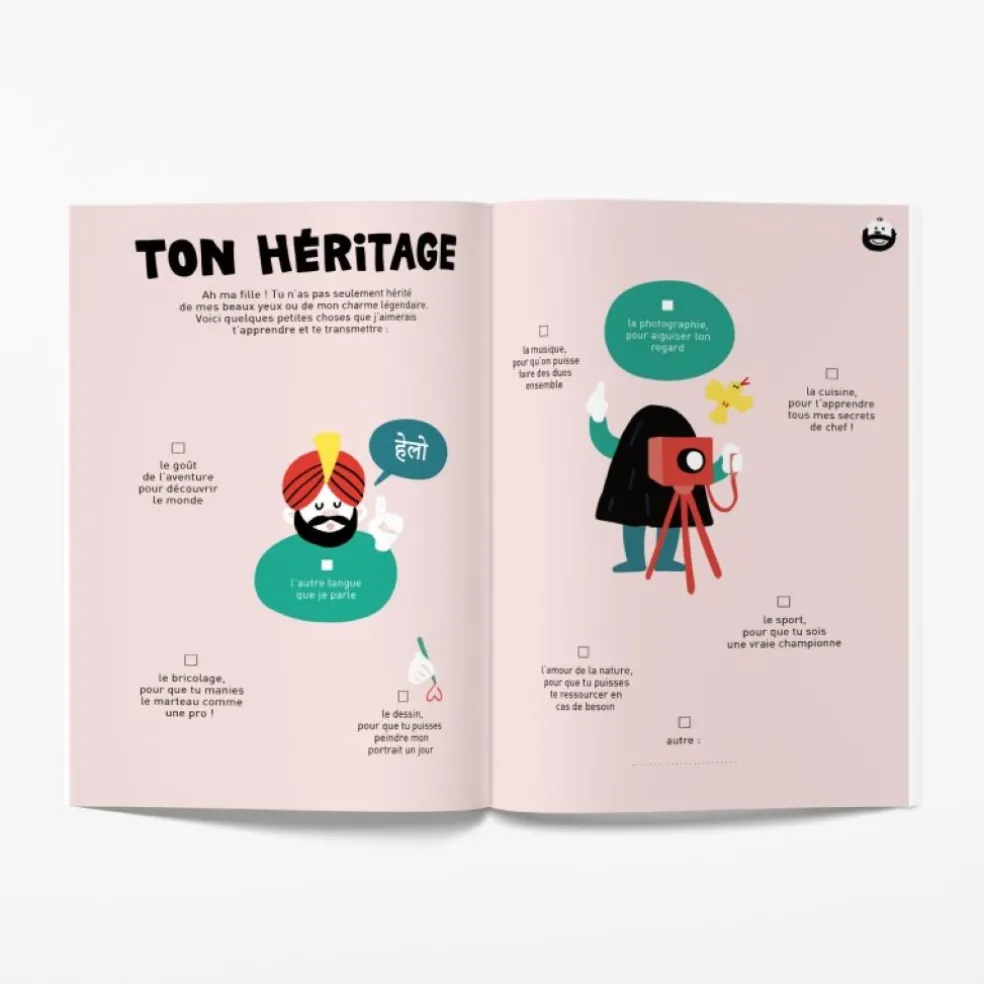 Mon papa chou, ma fille adorée ! Quel lien incroyable que celui qui unit un père et sa fille ! Un livre plein d’humour et de légèreté à remplir rien qu’à deux pour profiter de cette relation si particulière. Que l’on consomme une page par jour ou toutes d’un coup, père et fille sont certains de partager un moment de complicité !