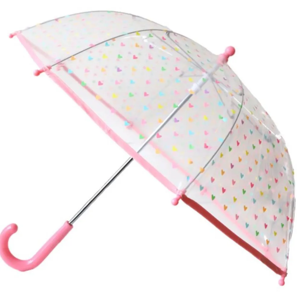 Des petits coeurs pour voir la vie en couleurs même sous la pluie ! Un parapluie que vos enfants vont adorer. Transparent, il permet de voir à travers tout en restant au sec.