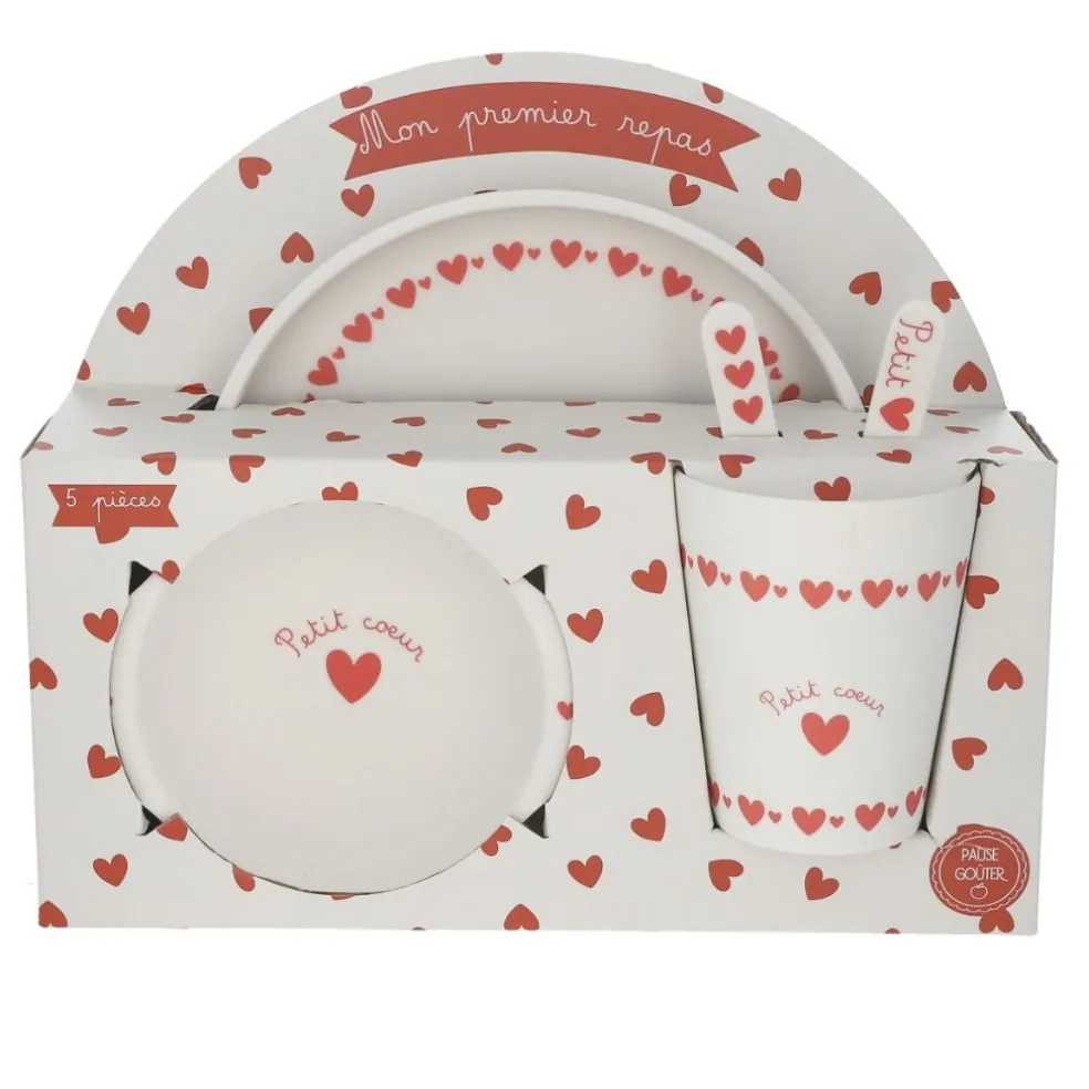 Cet ensemble de vaisselle en matière mélamine est incassable et ultra joli. On craque totalement pour ce kit repas d’une mignonnerie infinie avec ces motifs adorés de coeurs rouges. Un set adorable et plein d’amour !