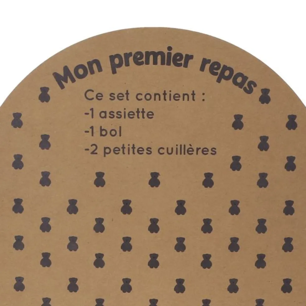 - Set composé de : 2 cuillères, 1 bol, 1 assiette