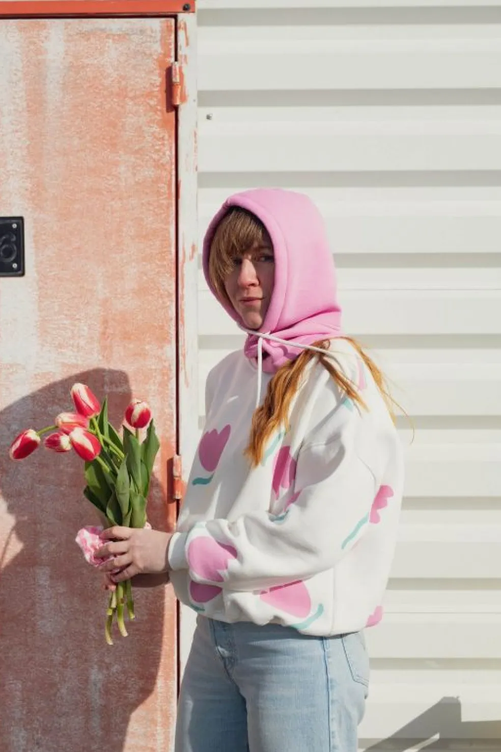 Un sweat ample et casual décliné dans un motif arty aux tulipes roses pour toutes les femmes !