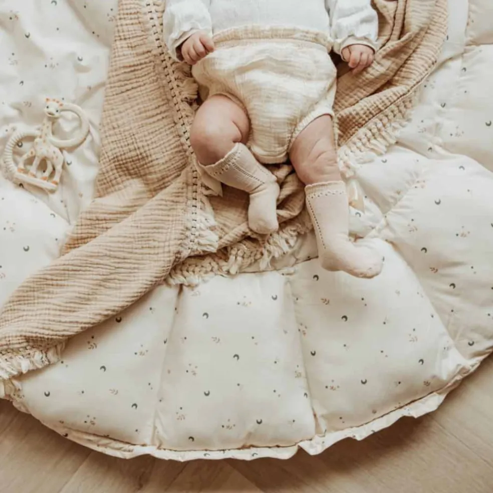 Ce tapis d’éveil est très pratique lorsque les pétales sont redressés, vous pouvez l’utiliser en tant que parc d’éveil au contour sécurisant, ou encore en panier de rangement. Les pétales sont redressés grâce à un système de cordes qu’on tire, une action simple qui s’effectue en moins d’une minute pour aller du tapis au panier. Agréable et moelleux, c’est un produit parfait pour les premiers mois de bébé.