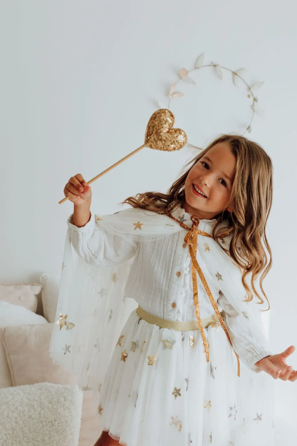 On associe la baguette magique en sequins dorés aux couronnes, capes et jupes en paillettes et vous voilà parée pour allumer les étoiles !