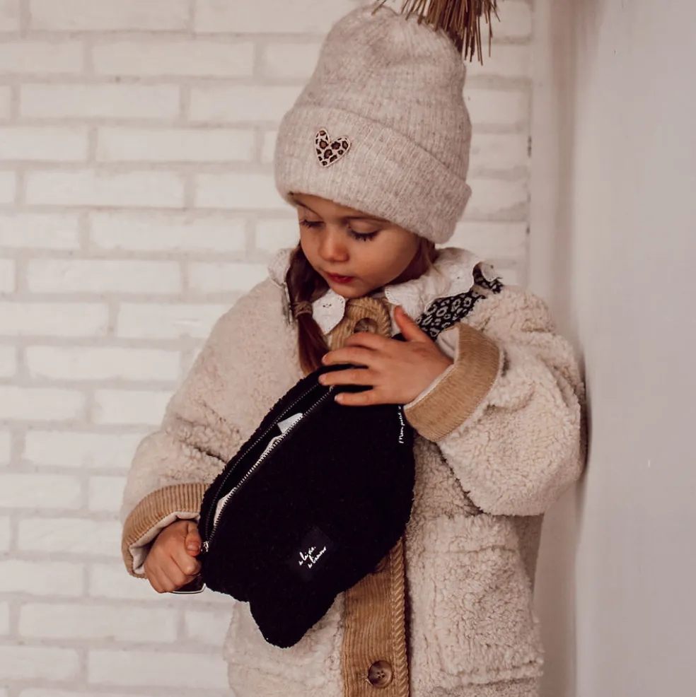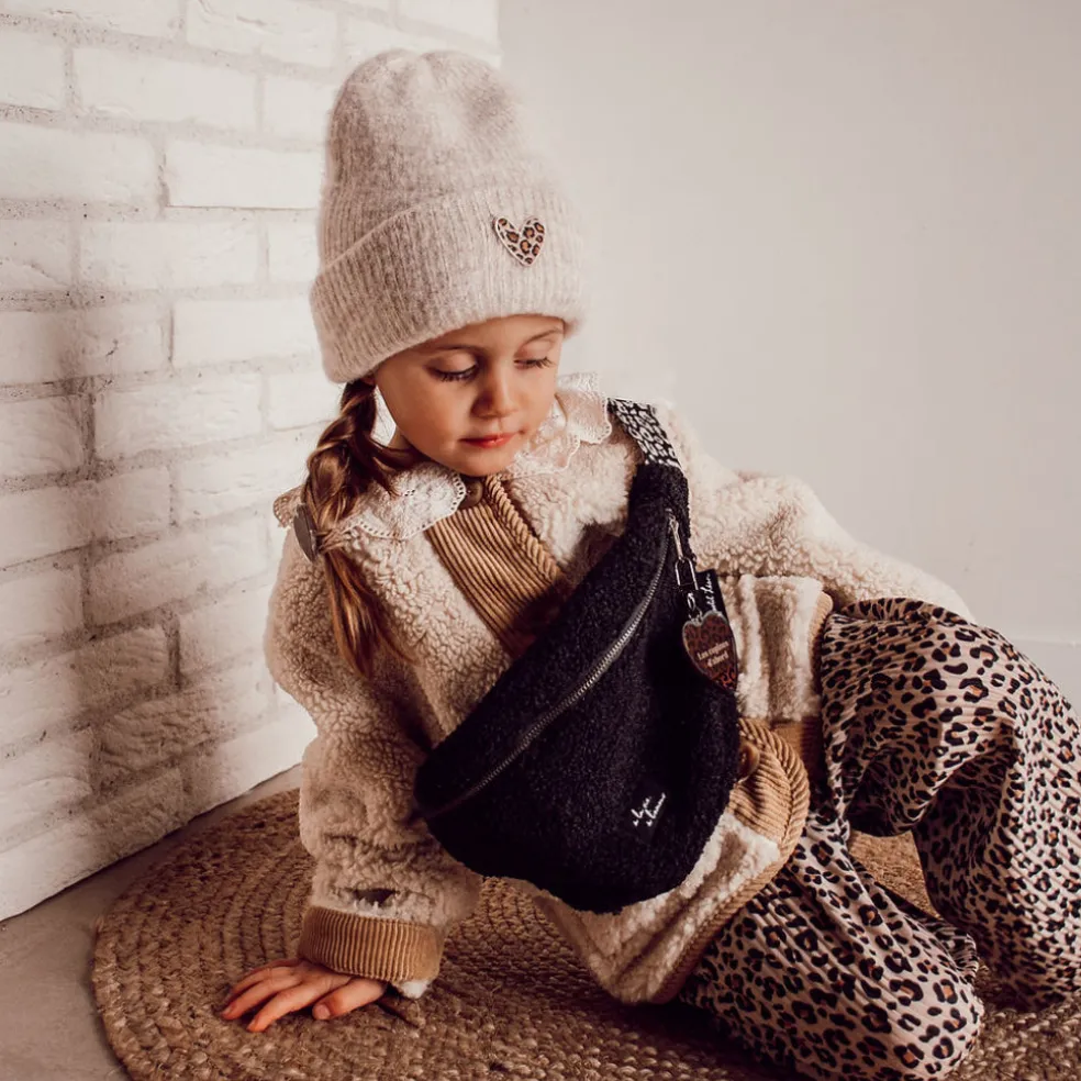 Dans une superbe moumoute noire, avec une sangle léopard : c’est la banane trop mignonne pour vos enfants. Grâce à son grand format, ils pourront mettre plein de choses dedans.