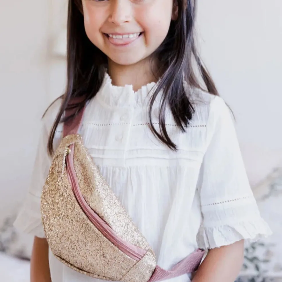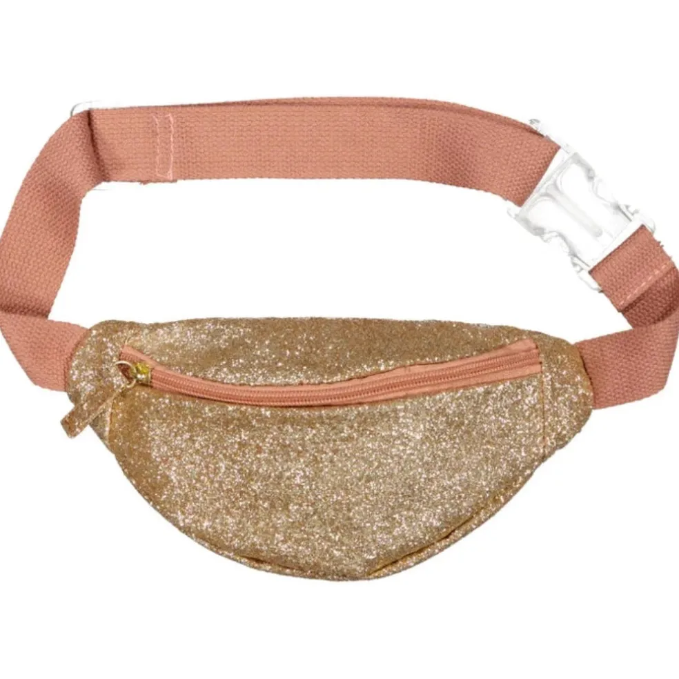 Très tendance, ce sac banane apporte la touche glam avec son tissu en glitter doré, parfait pour twister les tenues sages et ranger ses petits trésors !