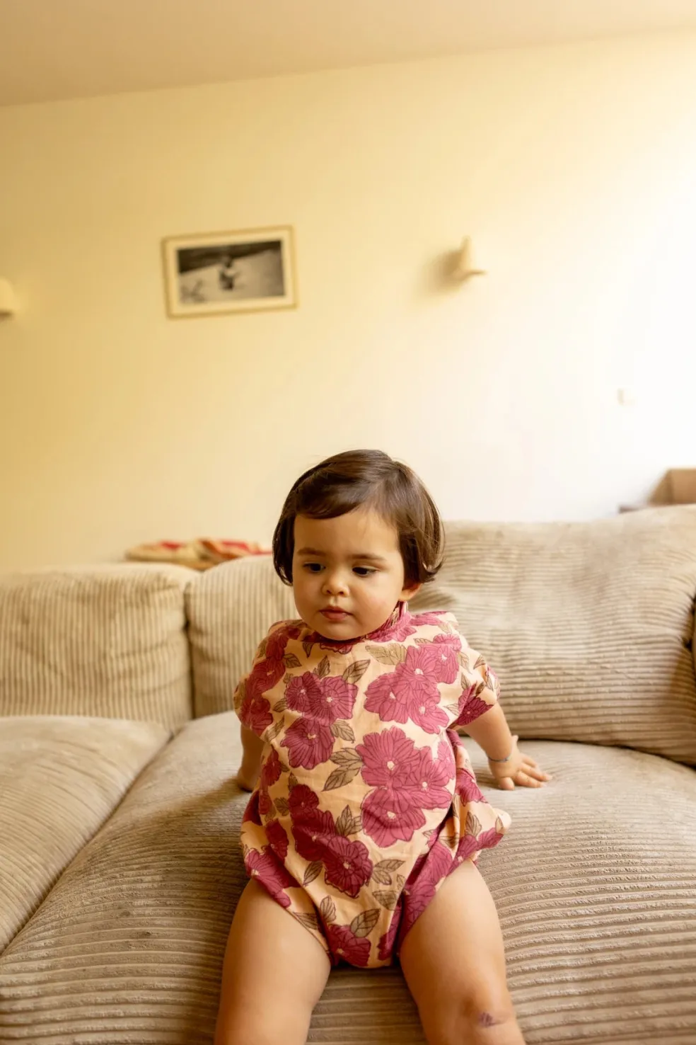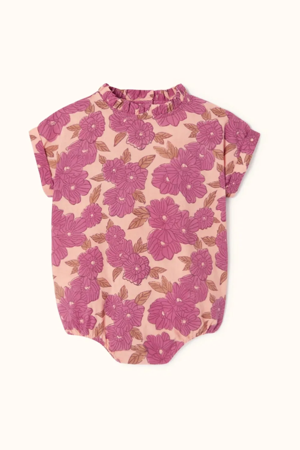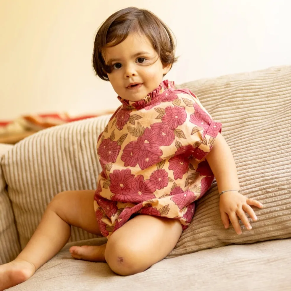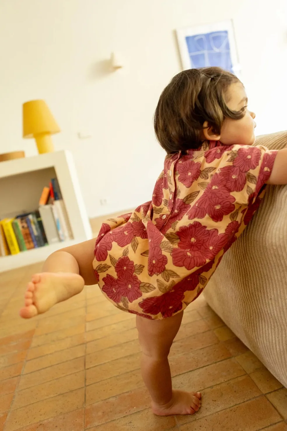 Voici l’iconique barboteuse Kalak et sa coupe loose, son petit col volanté et son imprimé fleuri. Moderne et facile à porter, elle sera indispensable pour les journées estivales !