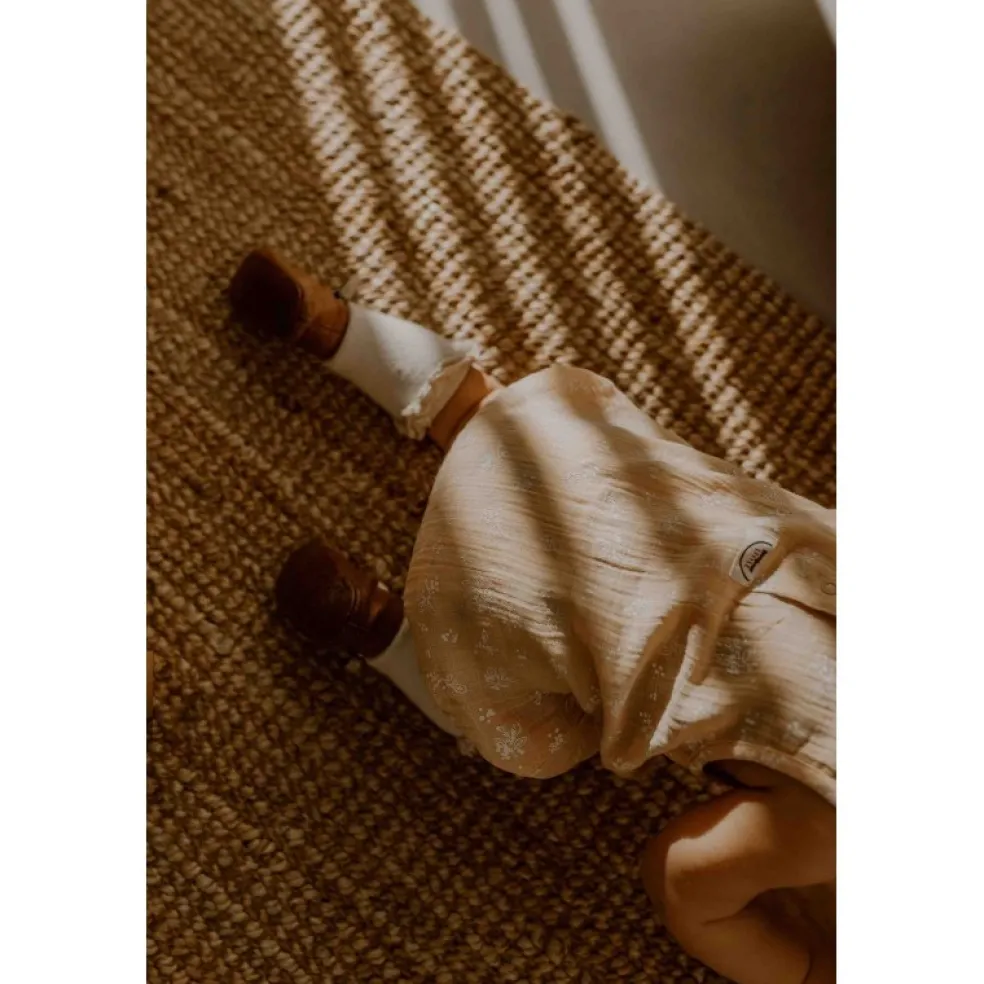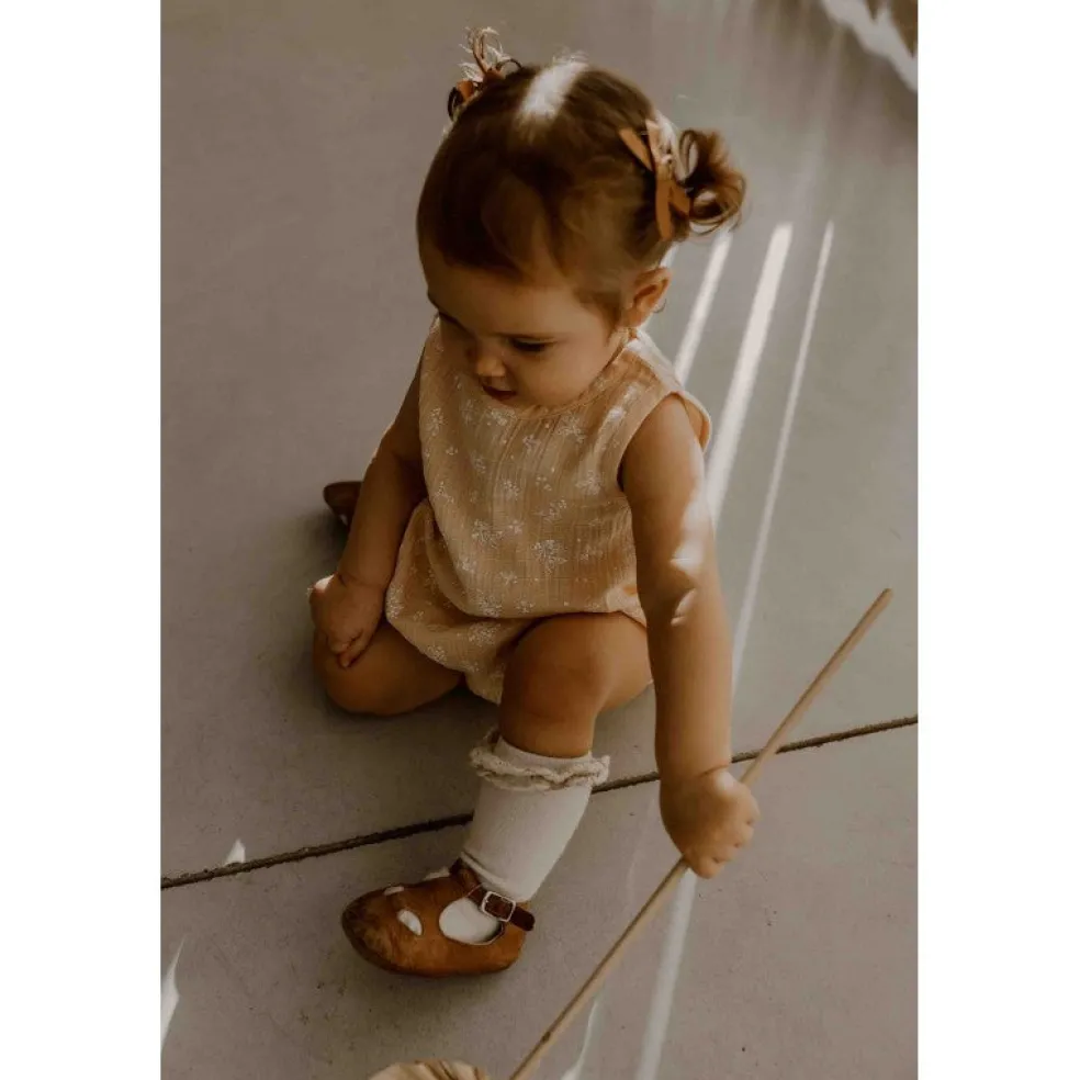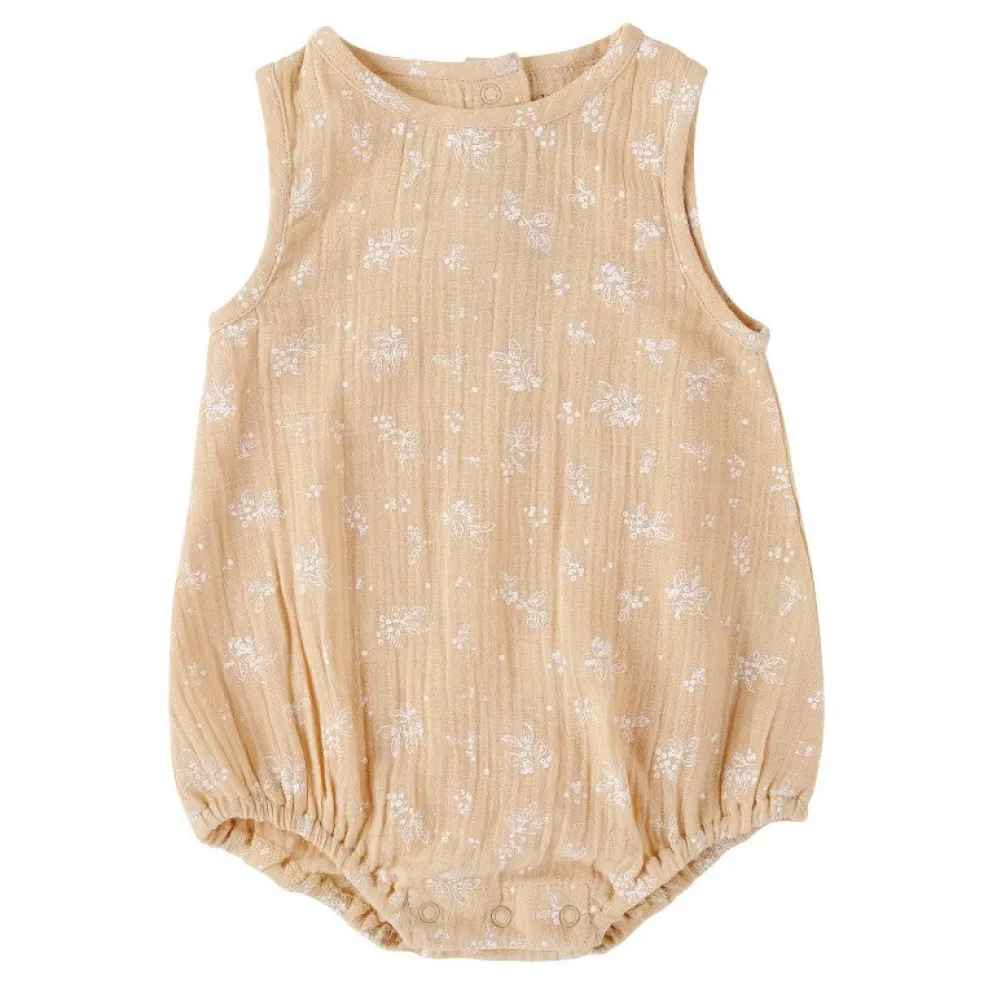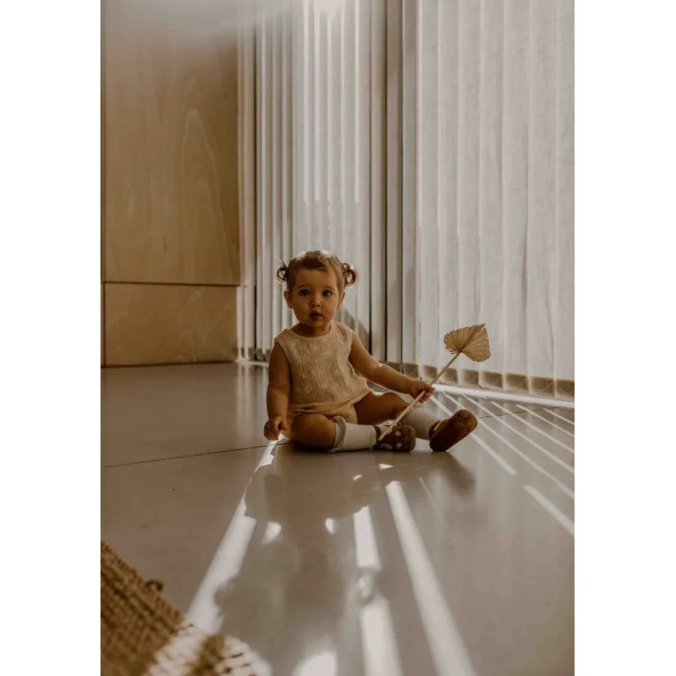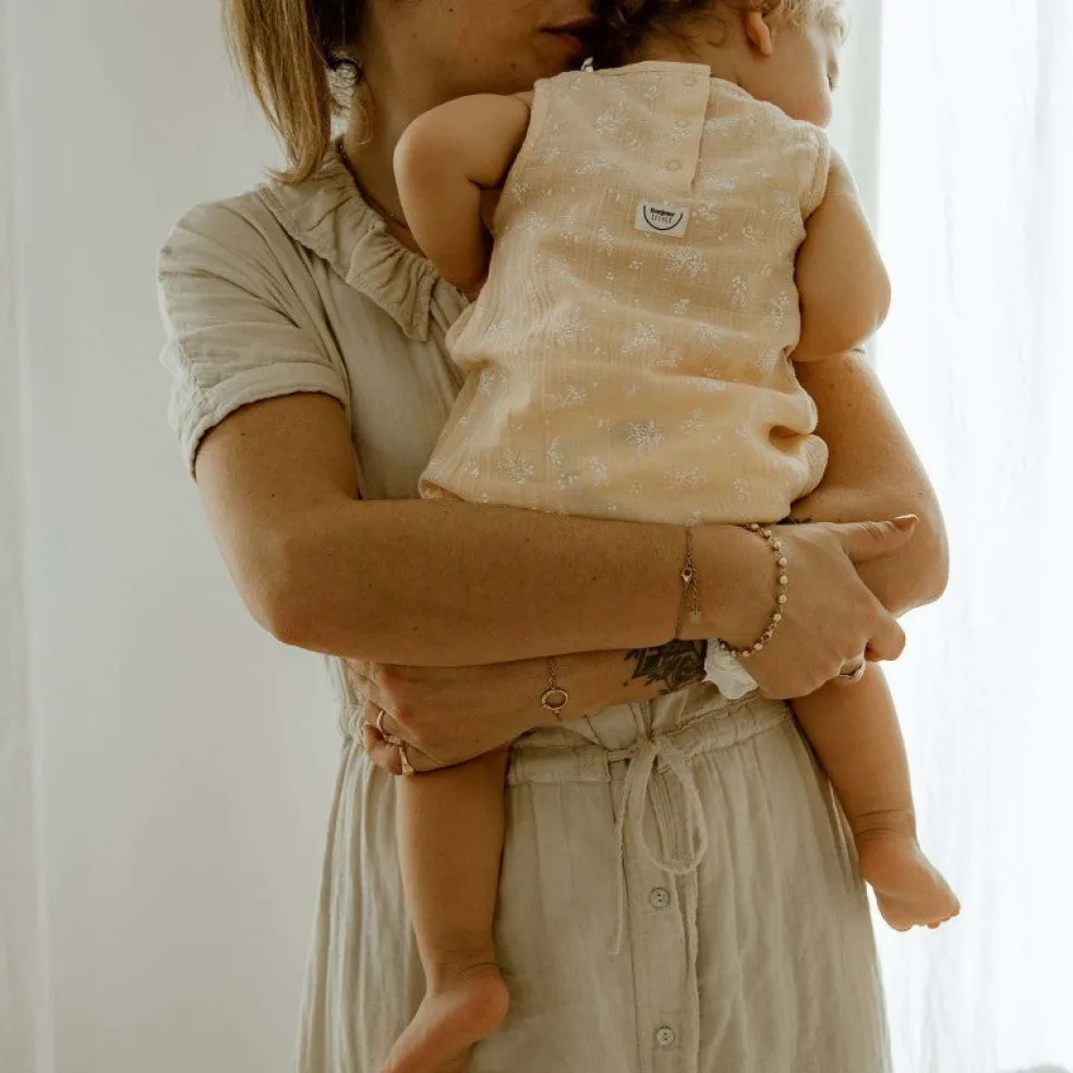 La barboteuse vegetal peach en gaze de coton biologique, issue de la collection golden hour est à la fois cool et élégante, idéale pour une journée décontractée à la maison comme pour un évènement agrémentée de jolis accessoires.