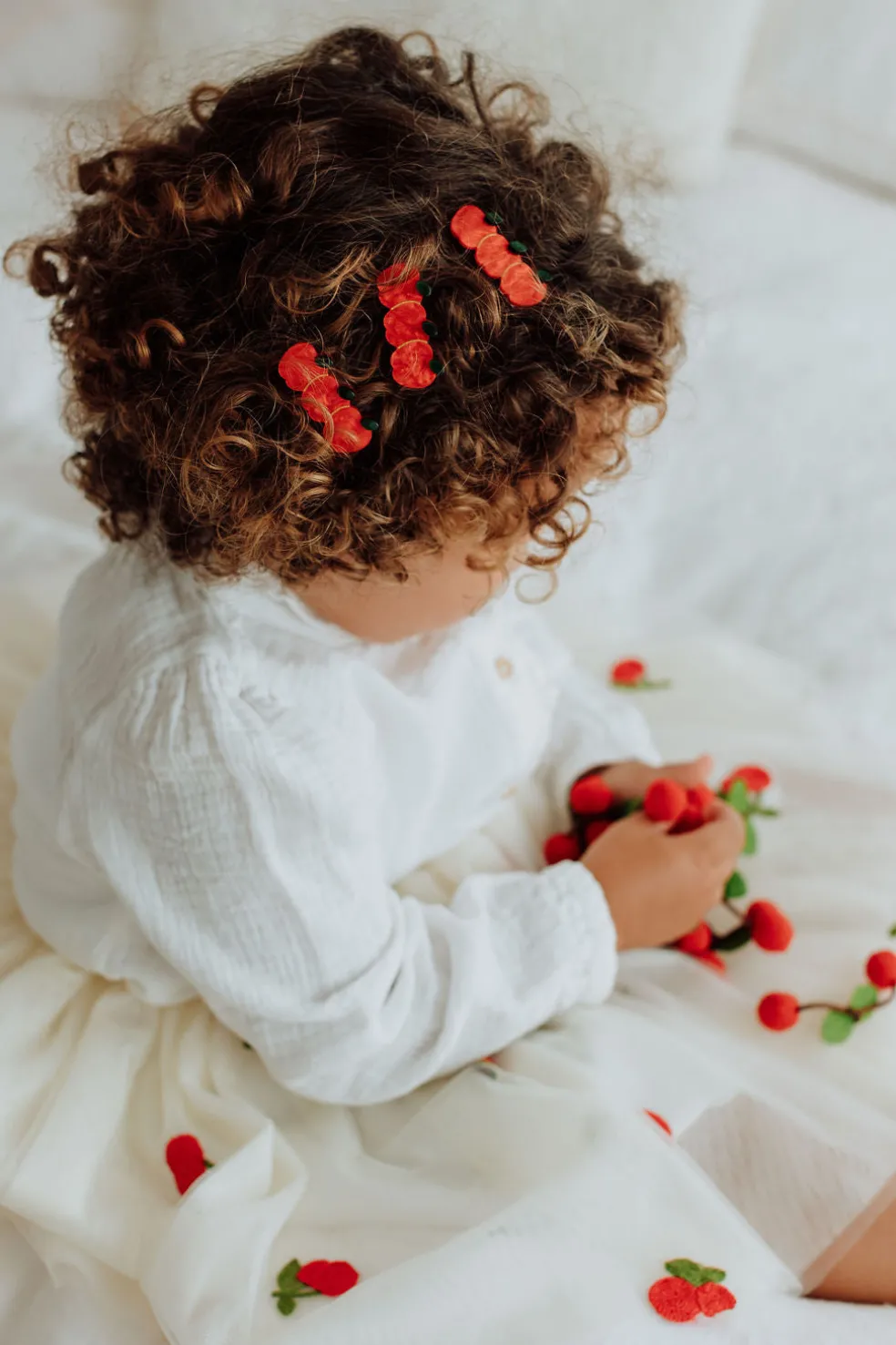 On craque sur cette barrette ornée de 3 jolies pommes ! Grace à sa pince croco, elle se glisse facilement dans les cheveux et tient les mèches les plus rebelles.
