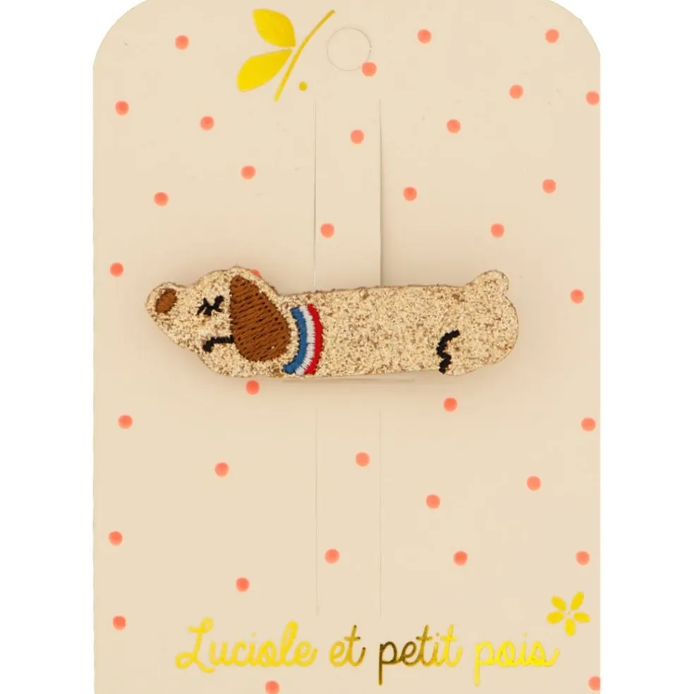Jolie barrette à paillettes en forme de teckel pour les amoureux des animaux et apporter une touche de poésie à ses cheveux.