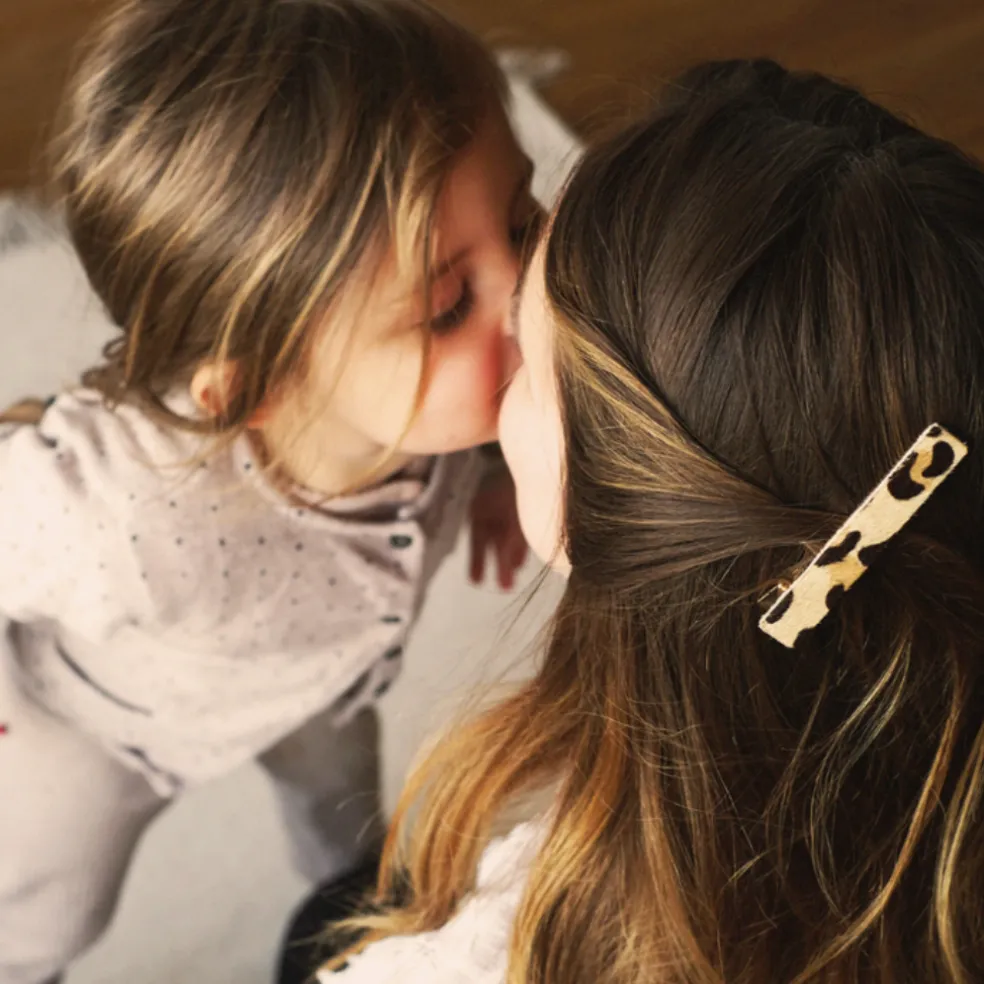 Jolies barrettes femme léopard de Gentil Coquelicot. Elles seront parfaites pour accessoiriser vos tenues été comme hiver. Disponibles dans 3 coloris, de haut en bas sur la photo: beige, caramel et taupe. Chaque barrette est différente, plus ou moins claires, marques plus ou moins espacées etc…