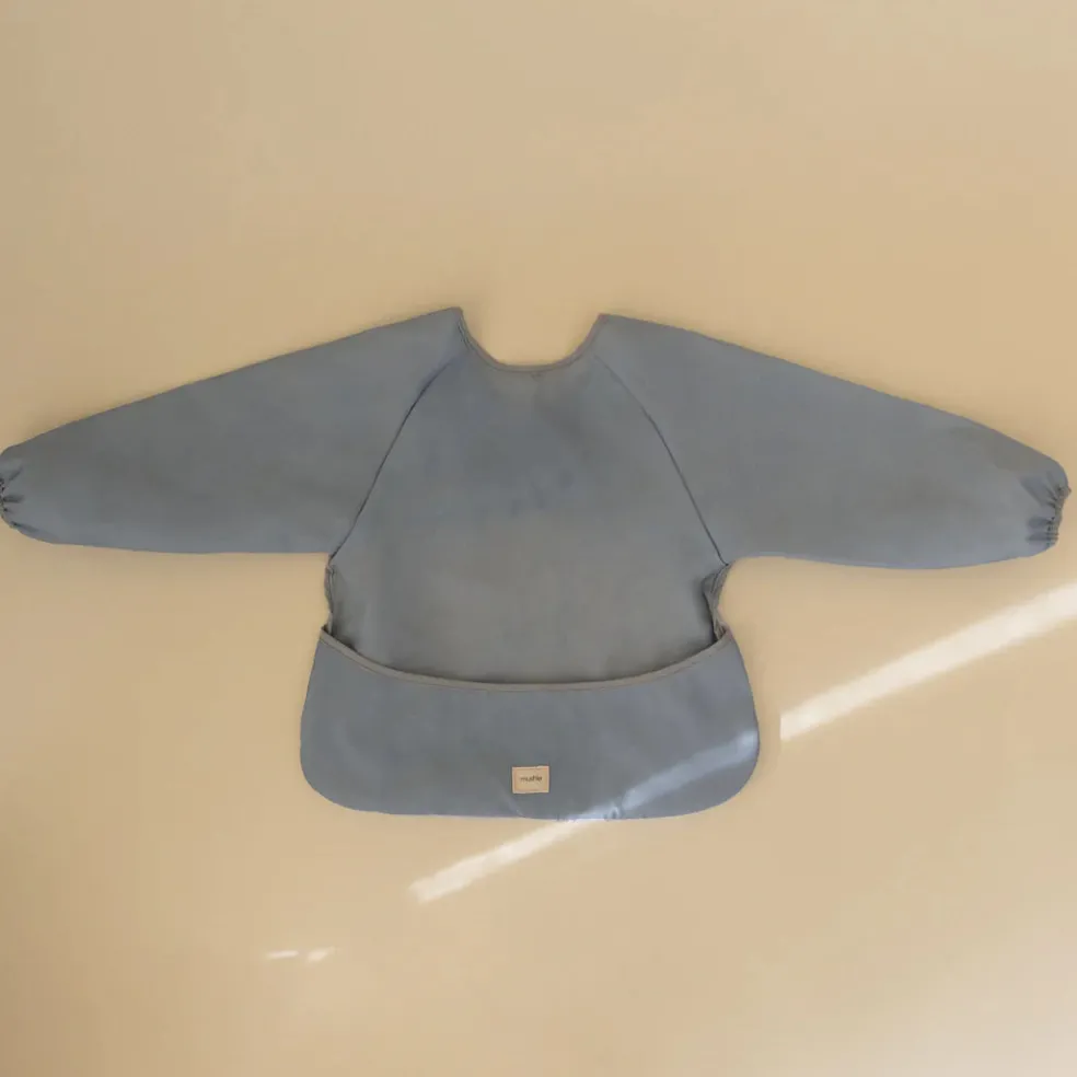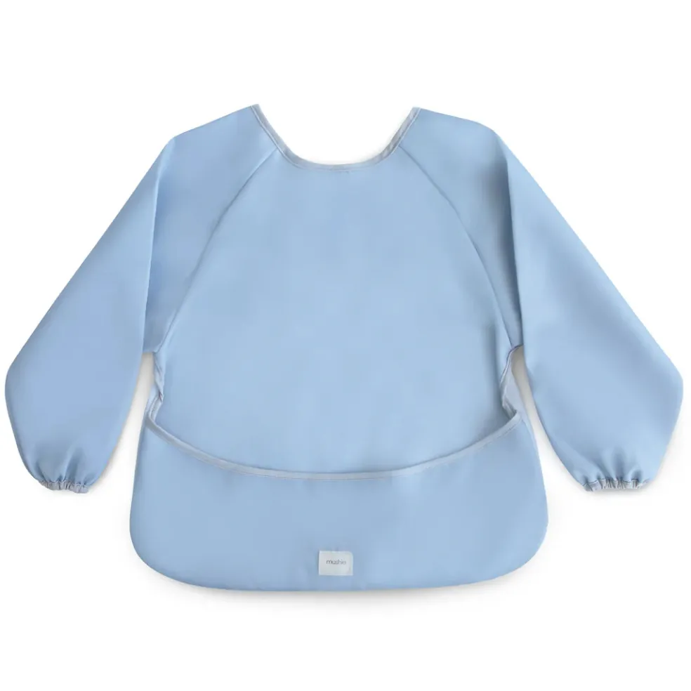 Le bavoir imperméable doté de manches longues est idéal pour protéger les vêtements au moment des repas.