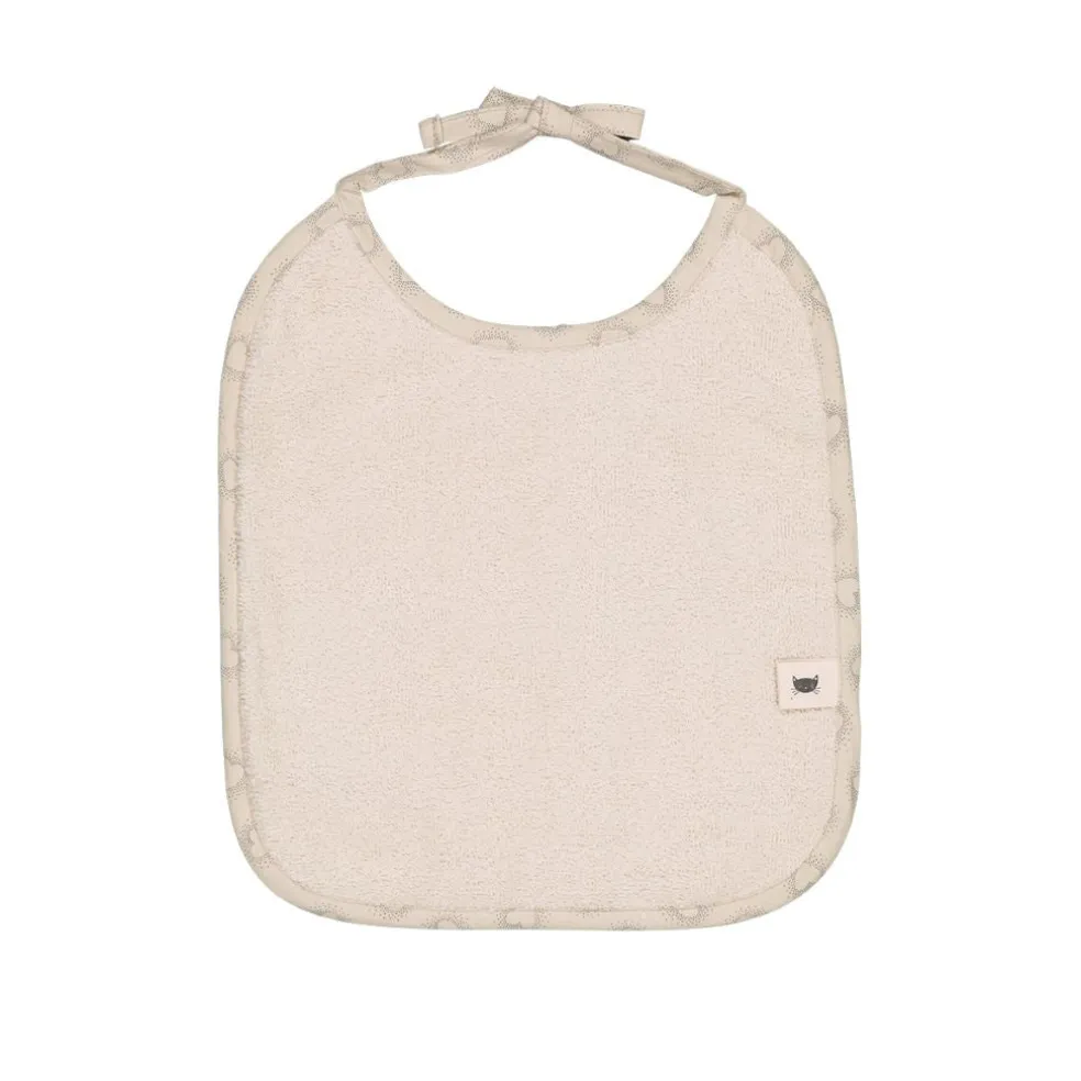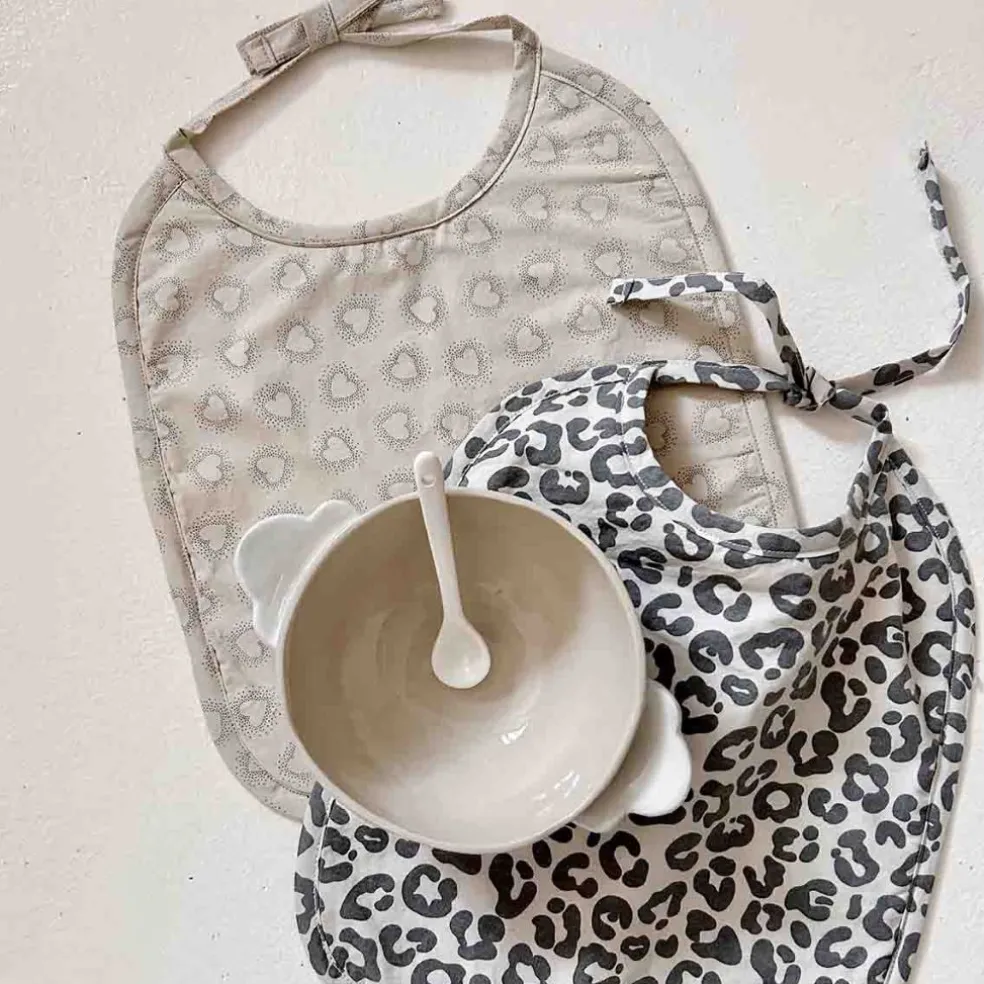 Nouvel imprimé, coeurs en pointillés. Bavoir éponge à nouer.