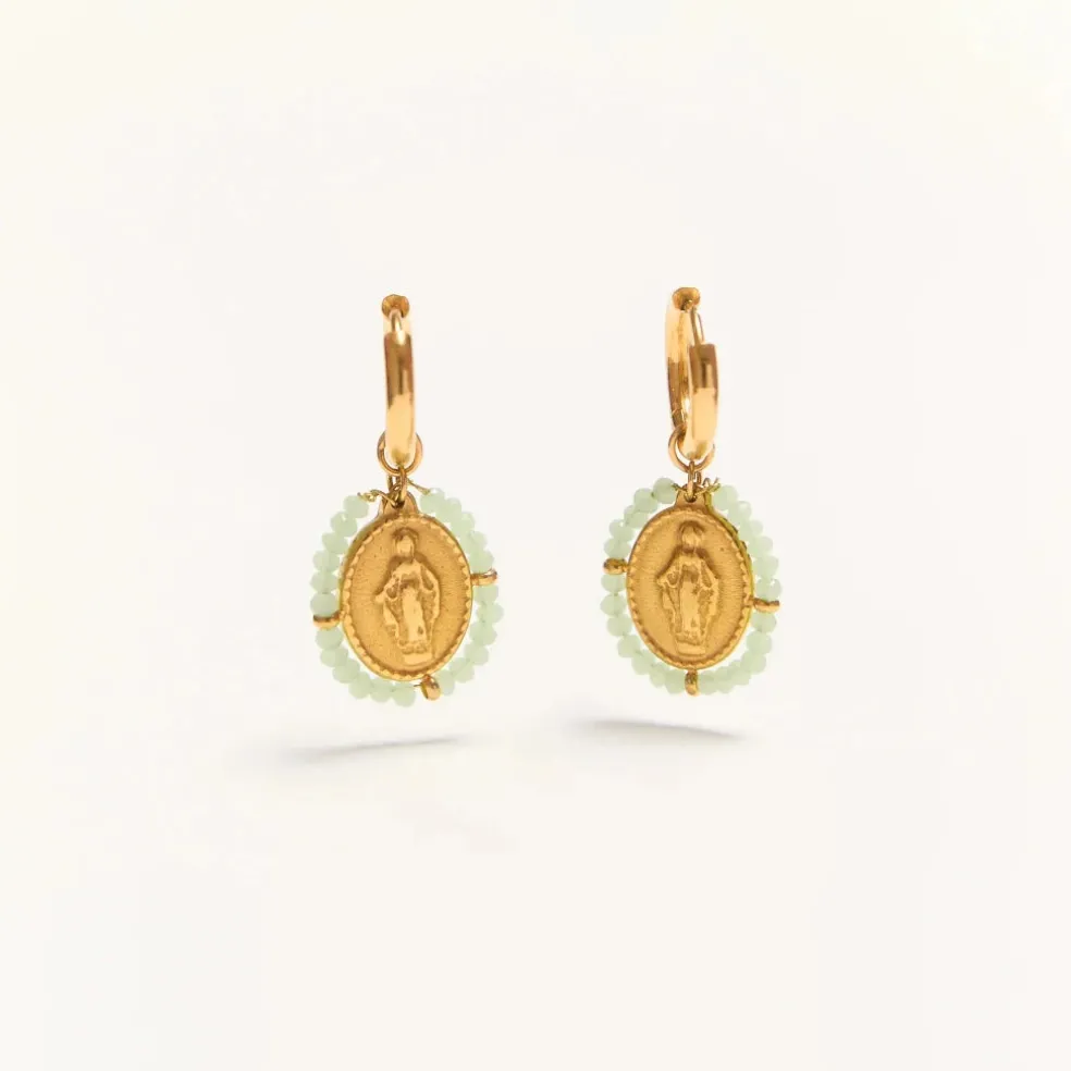 On aime tellement la médaille Santa Maria qu’elle a été décliné en boucles d’oreilles. Des créoles dorées ornées de mini médailles qui dansent à vos oreilles. On adore, et vous ?