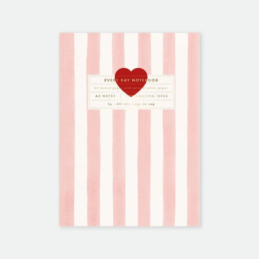 Un beau cahier rose à rayures pour y noter toutes ses envies et pensées.