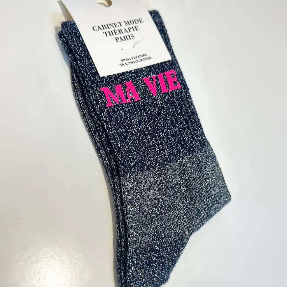 Ajoutez une touche de fantaisie à votre style avec ces chaussettes « Ma Vie ». Que vous souhaitiez vous faire plaisir ou surprendre quelqu’un de spécial, ces chaussettes sauront vous faire sourire avec leur design léger.