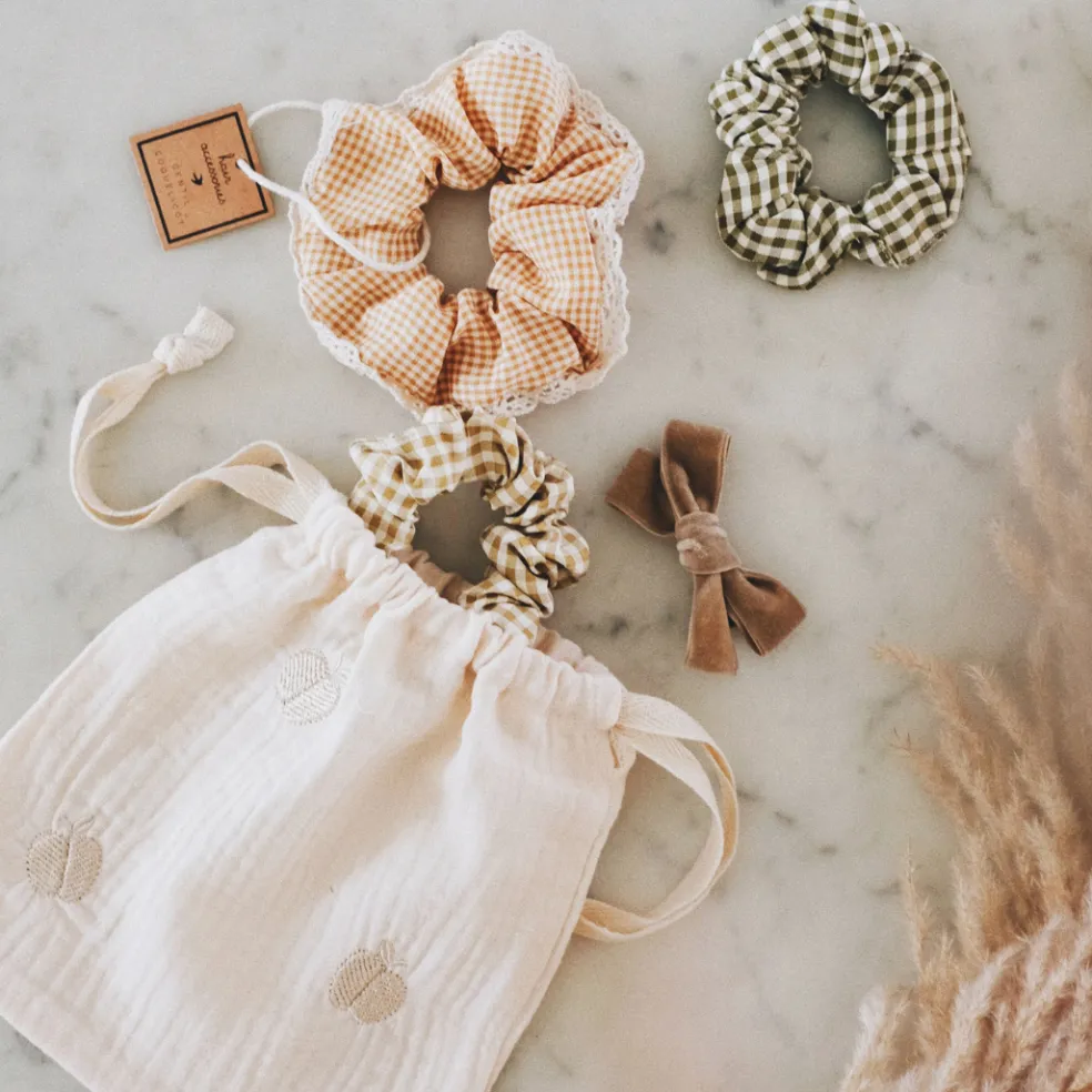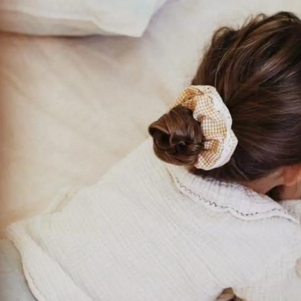 Craquez pour ce superbe chouchou vichy et sa jolie finition macramé. On adore son style rétro et bohème à la fois.