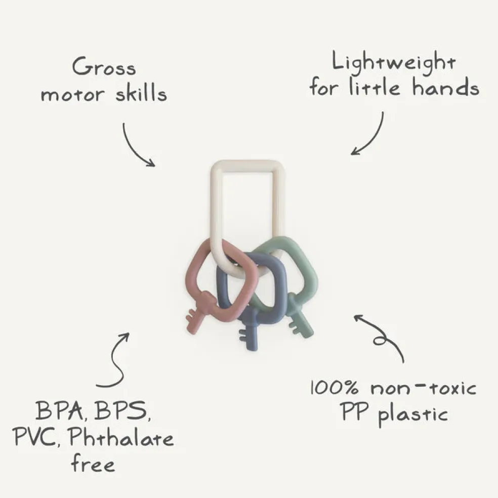 Libérez l’imagination de votre tout-petit avec la version revisitée d’un jouet porte-clés. Le porte-clés léger est facile à saisir et à secouer pour les petites mains, produisant un léger bruit de clic-clac. Facile à nettoyer et doux pour les gencives qui font leurs dents.