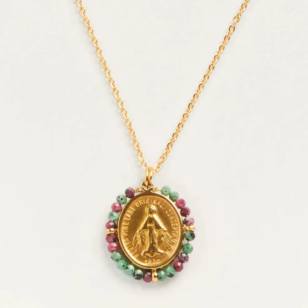 Disponible dans de nombreuses couleurs différentes, le collier médaille Santa Maria est un bijou hypoallergénique qui se porte en toutes circonstances.