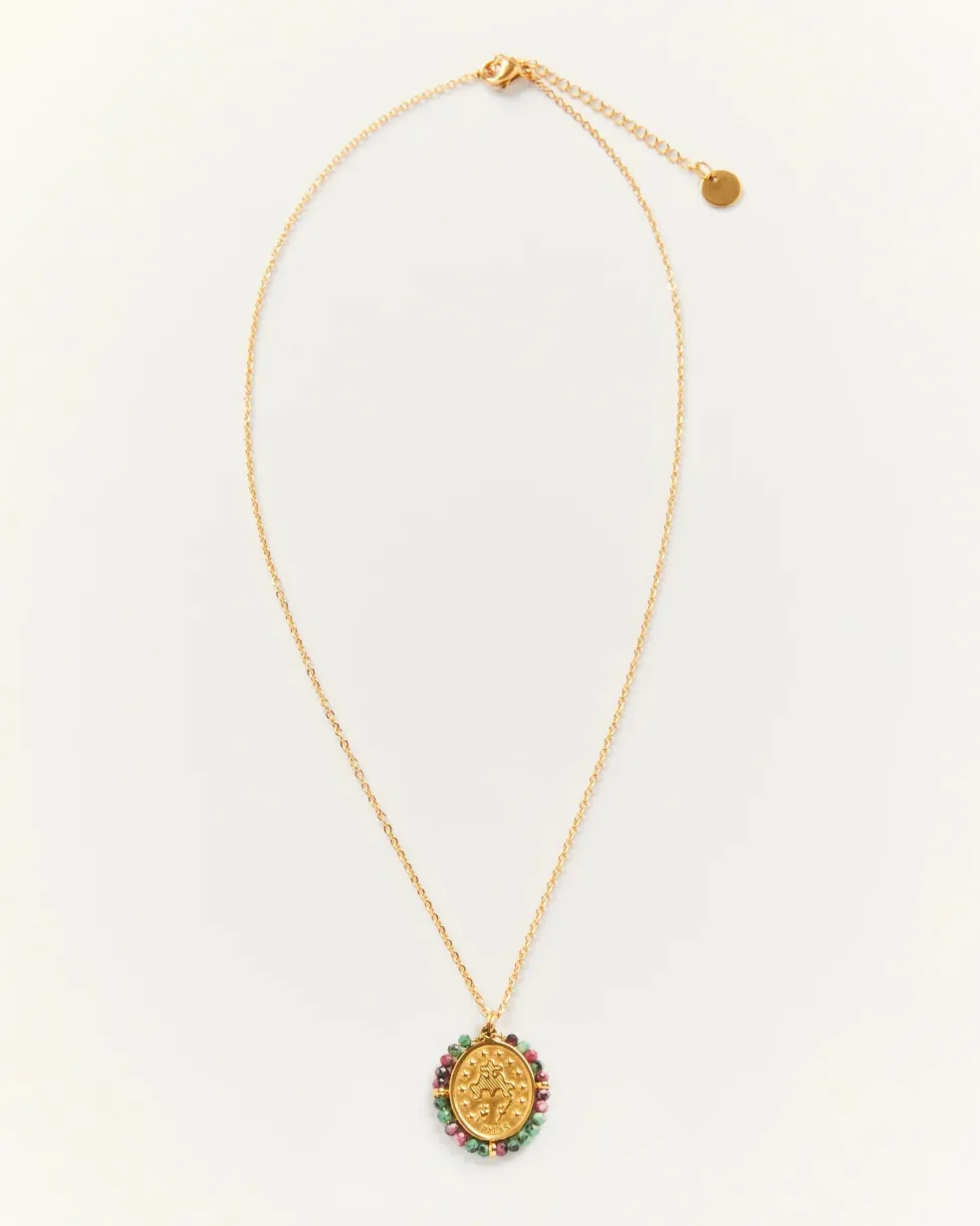 La médaille porte-bonheur de Palas et peut-être aussi la vôtre ? Un collier doré plein de symboles à porter près du coeur.
