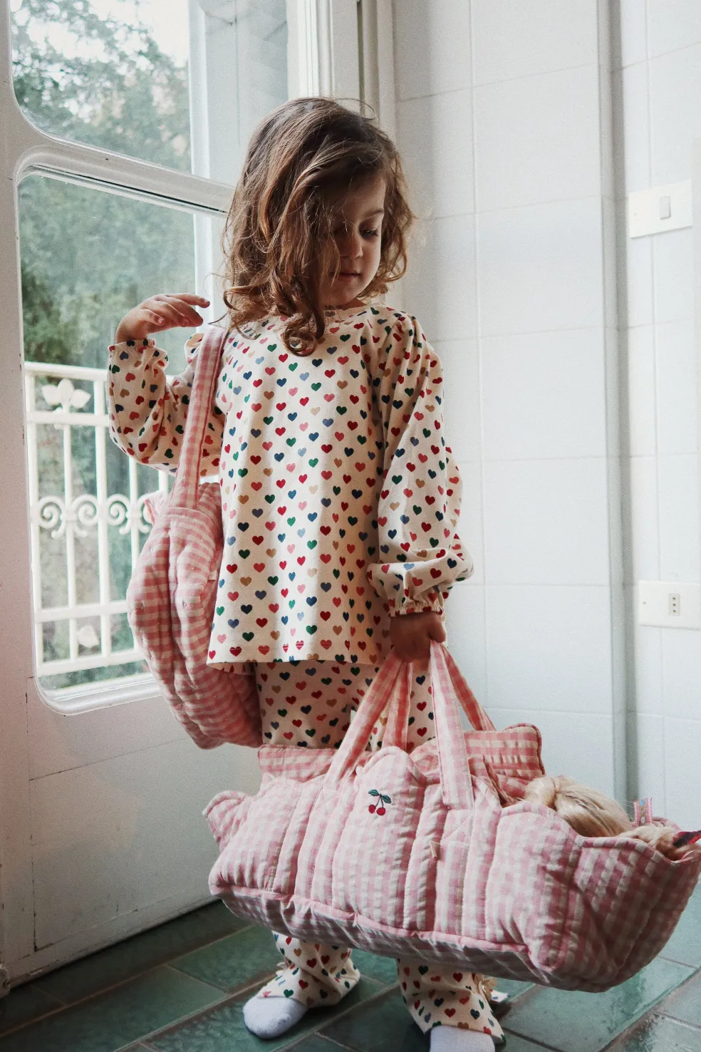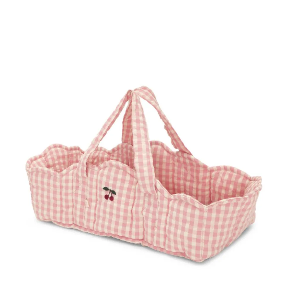 Couffin rembourré 100% coton. Conçu avec des sangles de transport pratiques, un passepoil doux et des ourlets festonnés.