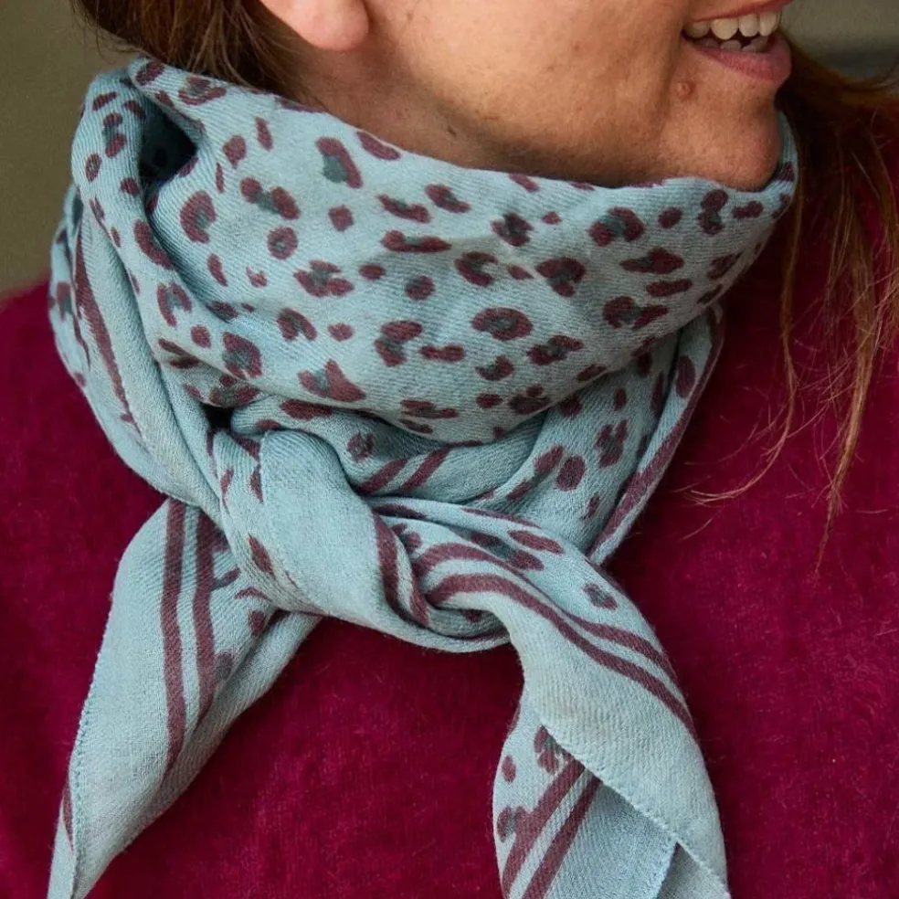 Craquez pour le foulard en laine léopard acier. Son imprimé tendance ne décevra pas 😉