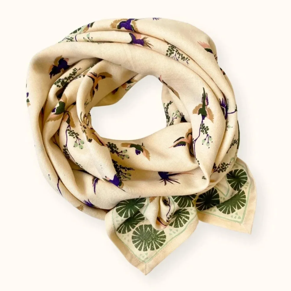 Chaque collection de foulards est unique, il est impossible d’obtenir les mêmes colorations d’une série à une autre. En effet, les couleurs sont réalisées à partir de pigments naturels, le séchage des tissus se fait à l’extérieur et dépend de la météo. Pour les personnes qui ont déjà ces modèles et veulent les acquérir de nouveau, sachez que les couleurs peuvent différer.