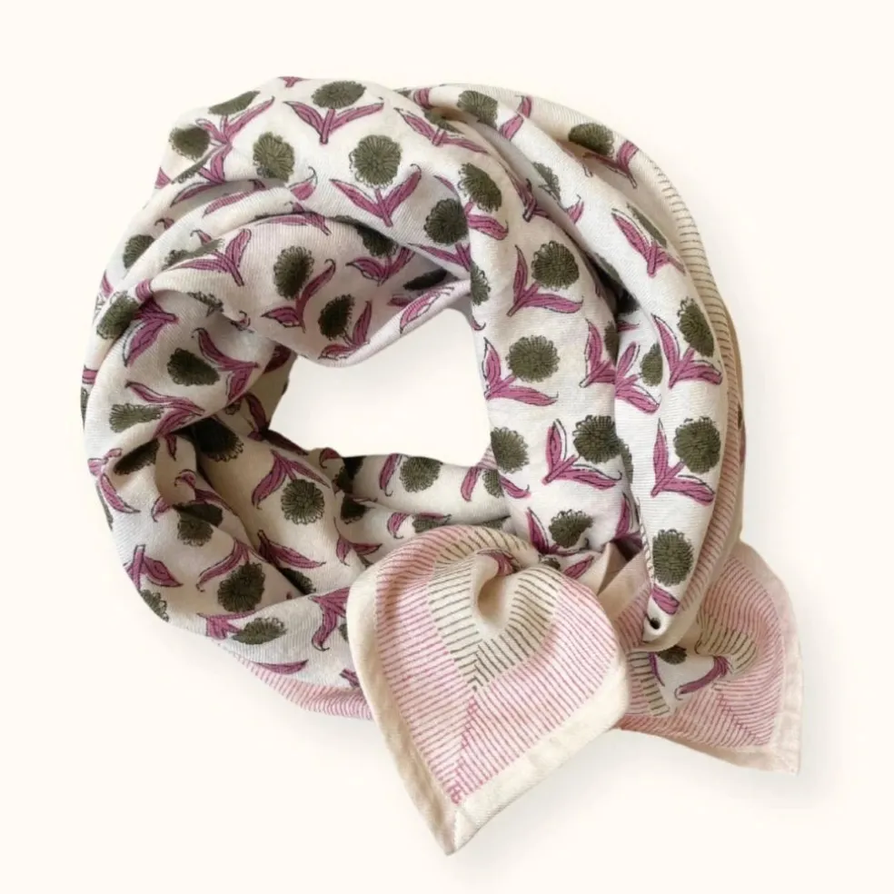 Chaque collection de foulards est unique, il est impossible d’obtenir les mêmes colorations d’une série à une autre. En effet, les couleurs sont réalisées à partir de pigments naturels, le séchage des tissus se fait à l’extérieur et dépend de la météo. Pour les personnes qui ont déjà ces modèles et veulent les acquérir de nouveau, sachez que les couleurs peuvent différer.
