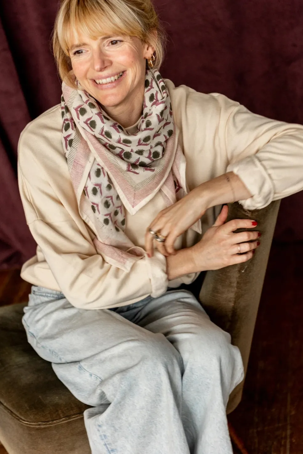 Le big foulard Latika « Lotus » Kaki est conçu pour envelopper toute la famille dans un cocon de chaleur. Son grand format et son imprimé iconique Apaches Collections en font un accessoire indispensable, apportant une touche de douceur à chaque tenue.