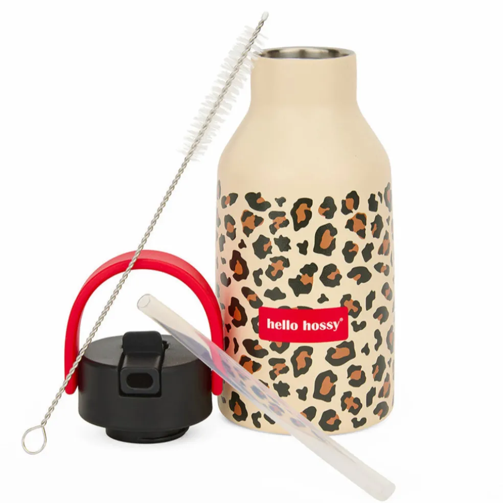 Optez pour la Gourde Isotherme pour enfants, Léopard, de Hello Hossy. Tous les détails ont été réfléchis pour les kids : 350ml, anse de transport, paille (ou pas), base anti-dérapante.