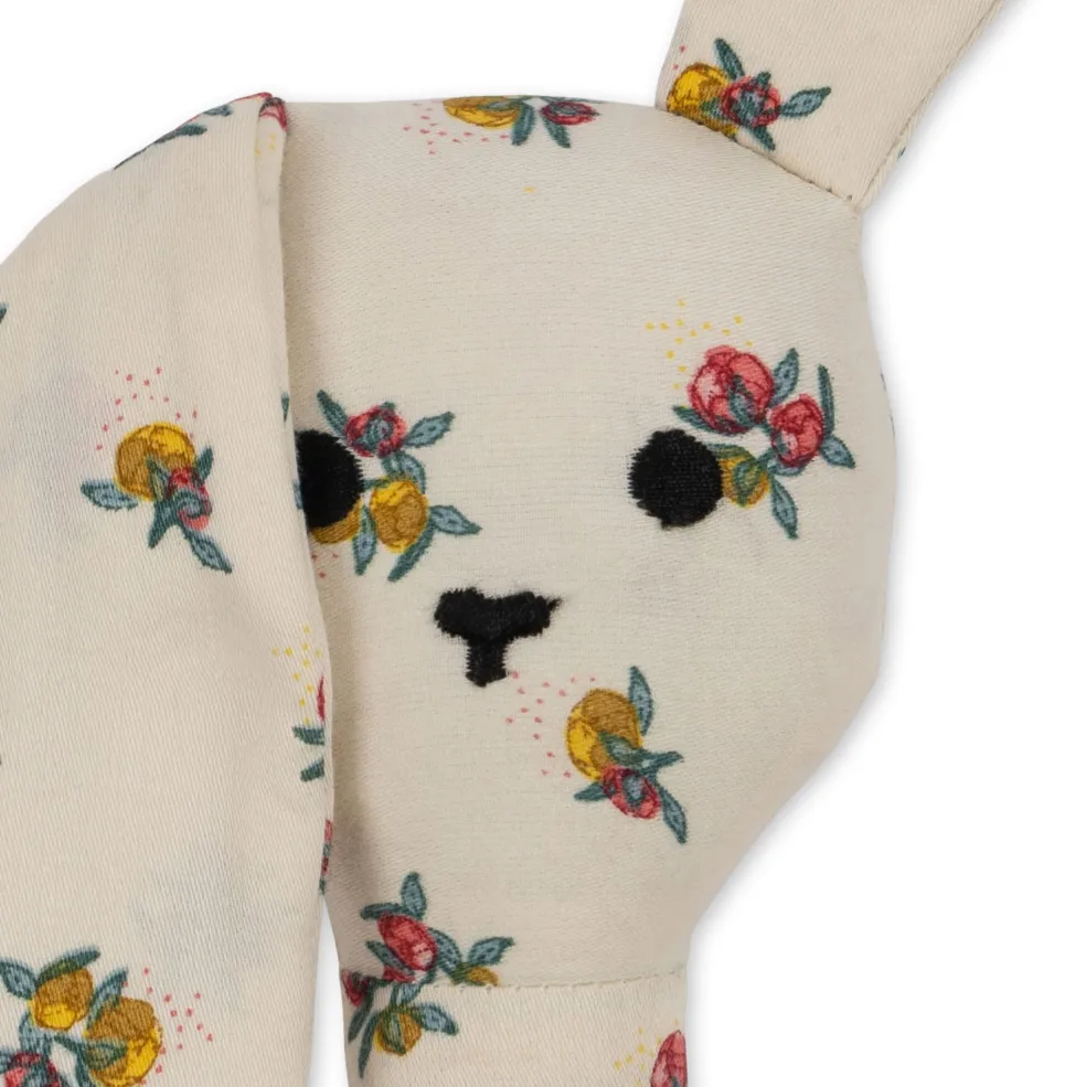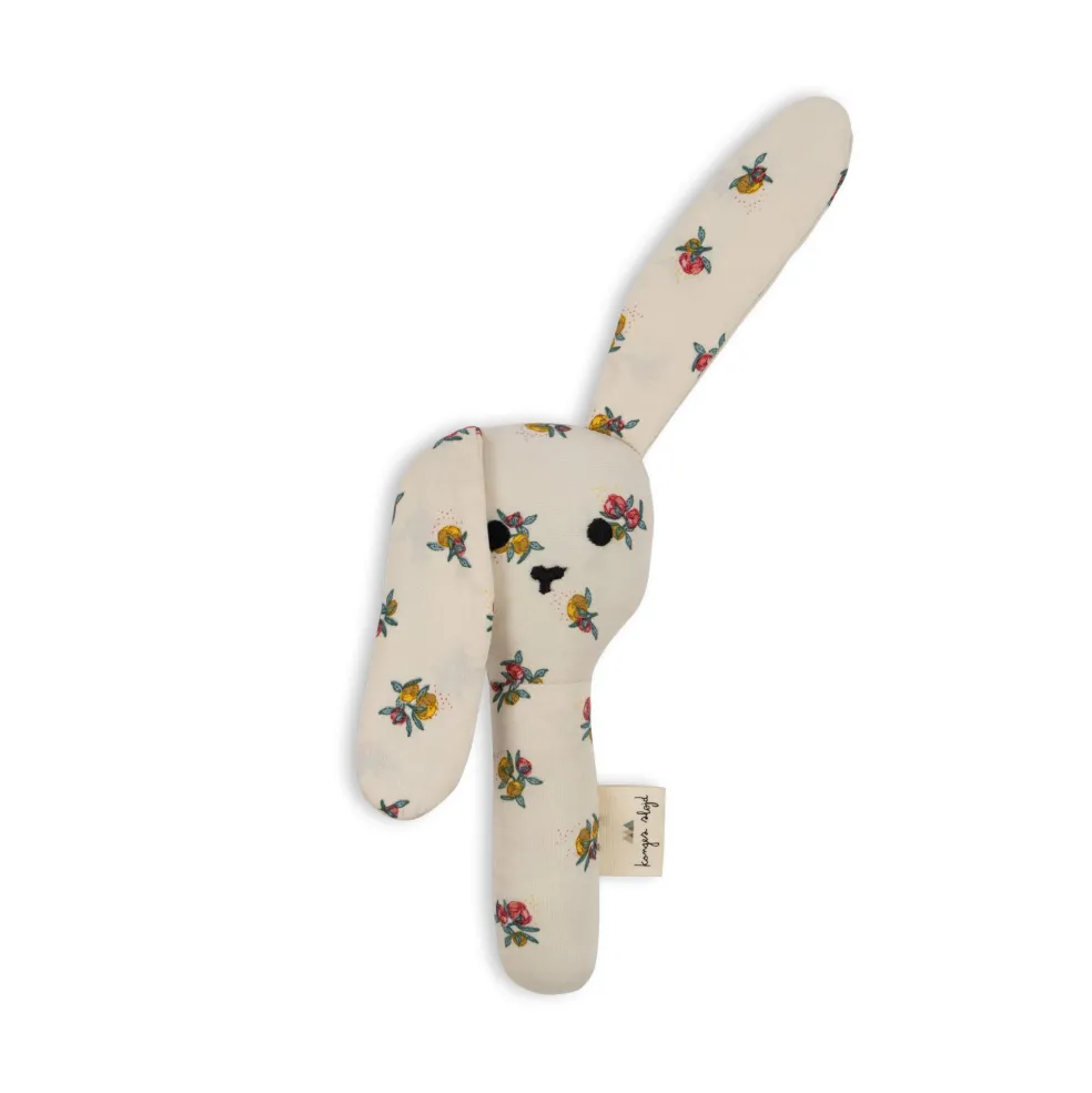 Hochet lapin Peonia Lemone, un nouveau motif fleurs. Ce petit hochet est un cadeau de naissance idéal.