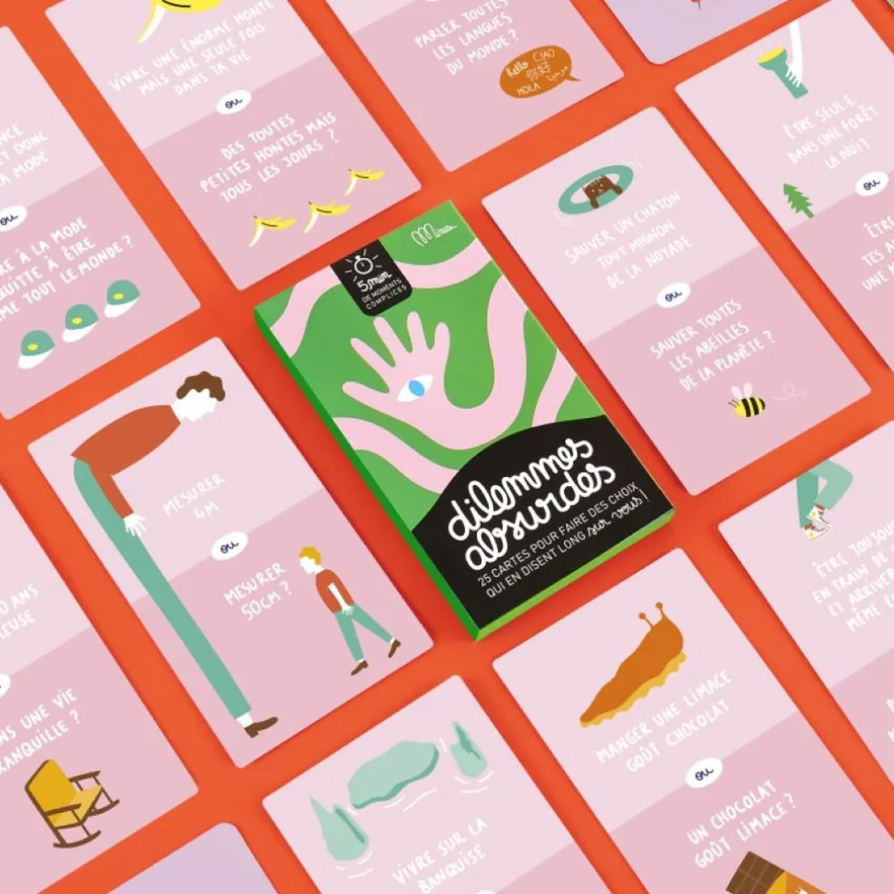 Tu préfères mesurer 50 cm ou 4 m ? Certains choix en disent long sur vous ! Voici un jeu de 25 cartes qui vous entraînera dans des débats sans fin plus drôles les uns que les autres ! 5 min (minimum) de rire assuré où vous allez découvrir votre enfant, votre frère, votre amie… sous un autre jour !