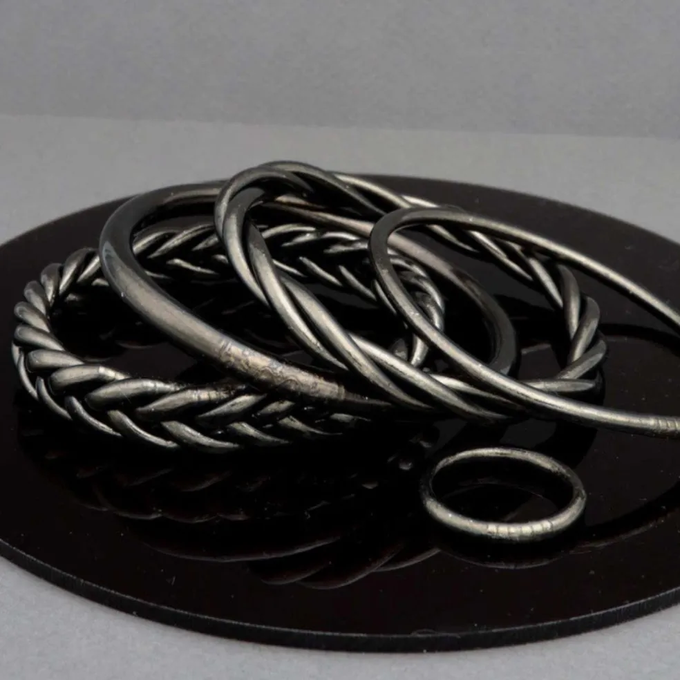 - Un bracelet bouddhiste constitué d’un jonc souple et transparent rempli à la feuille d’or ou d’argent