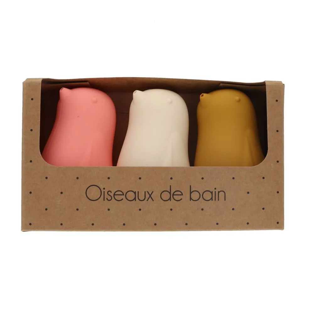 Des oiseaux en silicone pour jouer dans l’eau et mâchouiller !
