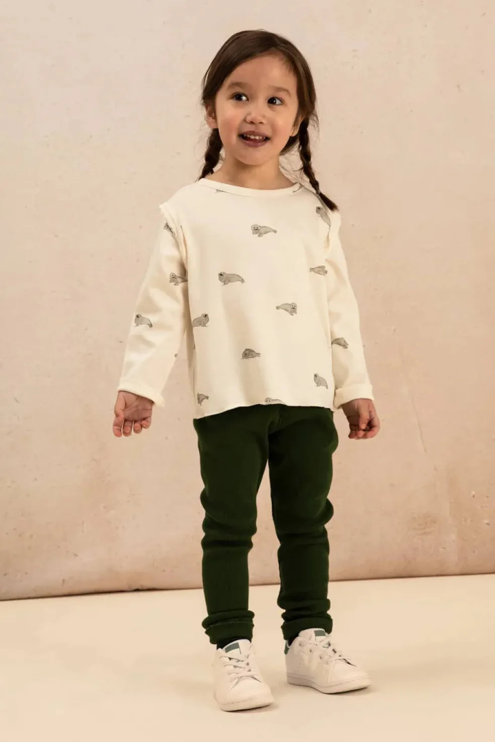 Legging mixte très confortable en jersey côtelé épais de coton biologique.