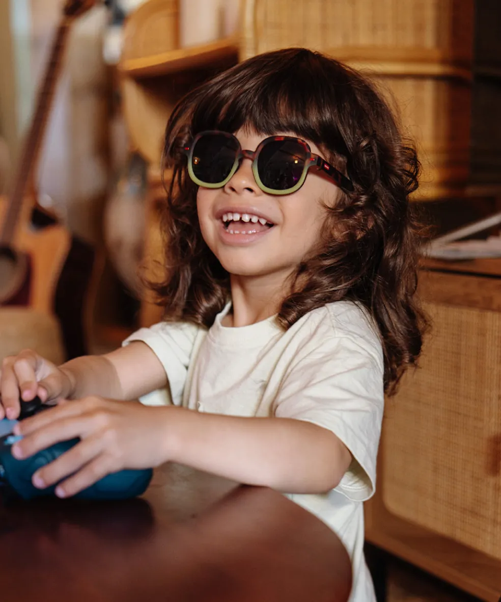 Les Lunettes de soleil pour enfants, Koody Craky Khaki, sont à croquer, craquer, découvrir. Modèle unisexe, lunettes bicolores, lunettes écailles pour kids, couleur khaki, forme ronde, verres catégorie 3, protection UV400. Le top !
