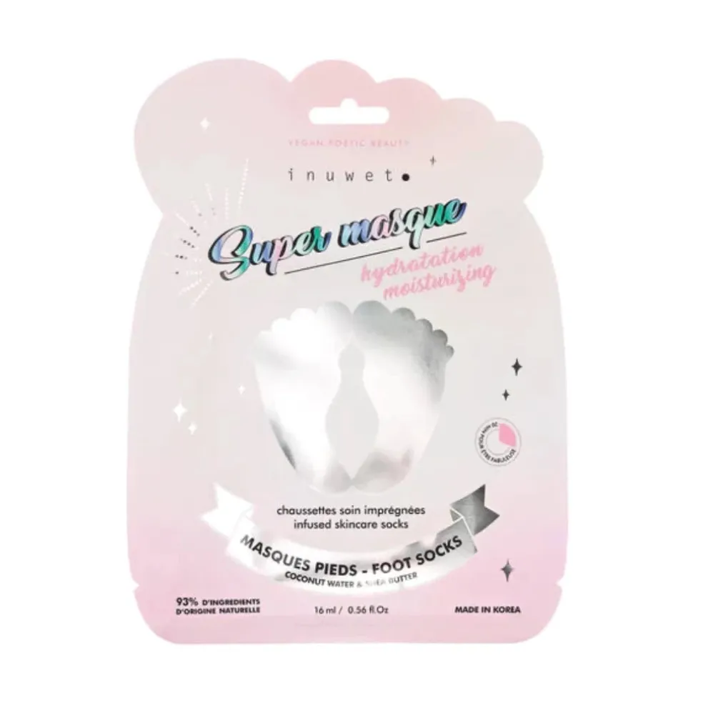 Masque hydratant pour vos pieds Inuwet ! Chaussettes imprégnées d’actifs et végétaux pour avoir des pieds tout doux pour l’été. Pour petits et grands !