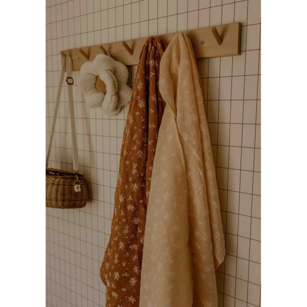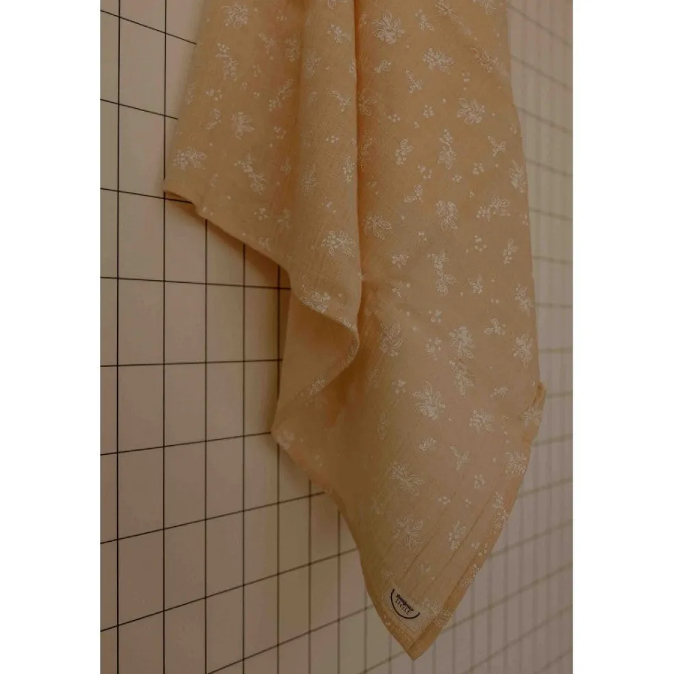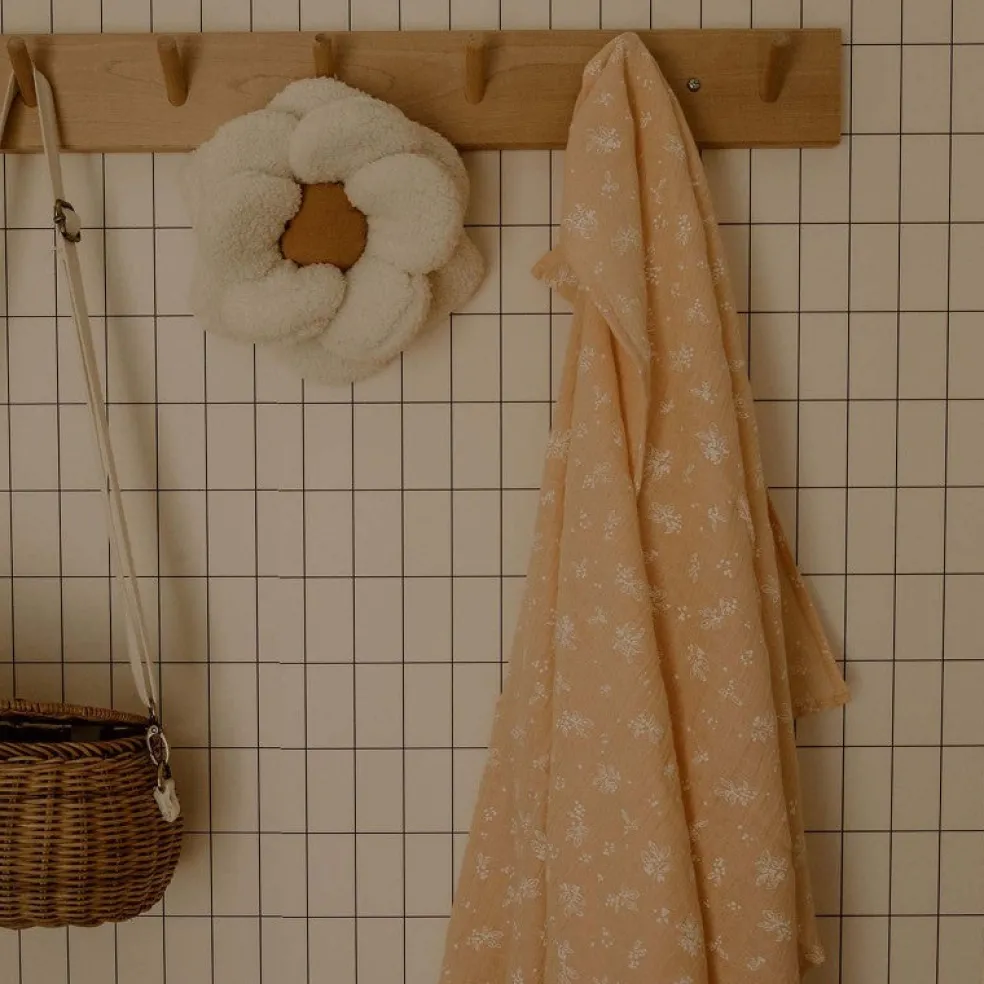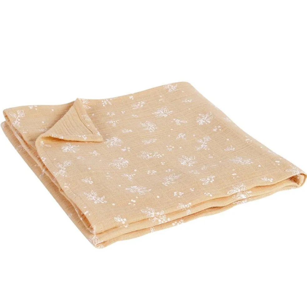 Le Lange XXL Bonjour Little imprimé vegetal peach, collection GOLDEN HOUR, un indispensable du trousseau de naissance.