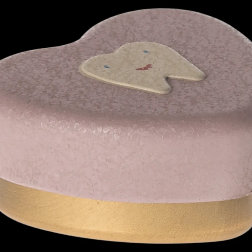 Cette boîte en métal et en forme de cœur est l’endroit idéal pour conserver les dents de lait et conserver des souvenirs d’enfance. La boîte est ornée d’une jolie dent en relief et d’une surface à l’allure craquelée, sur le couvercle.
