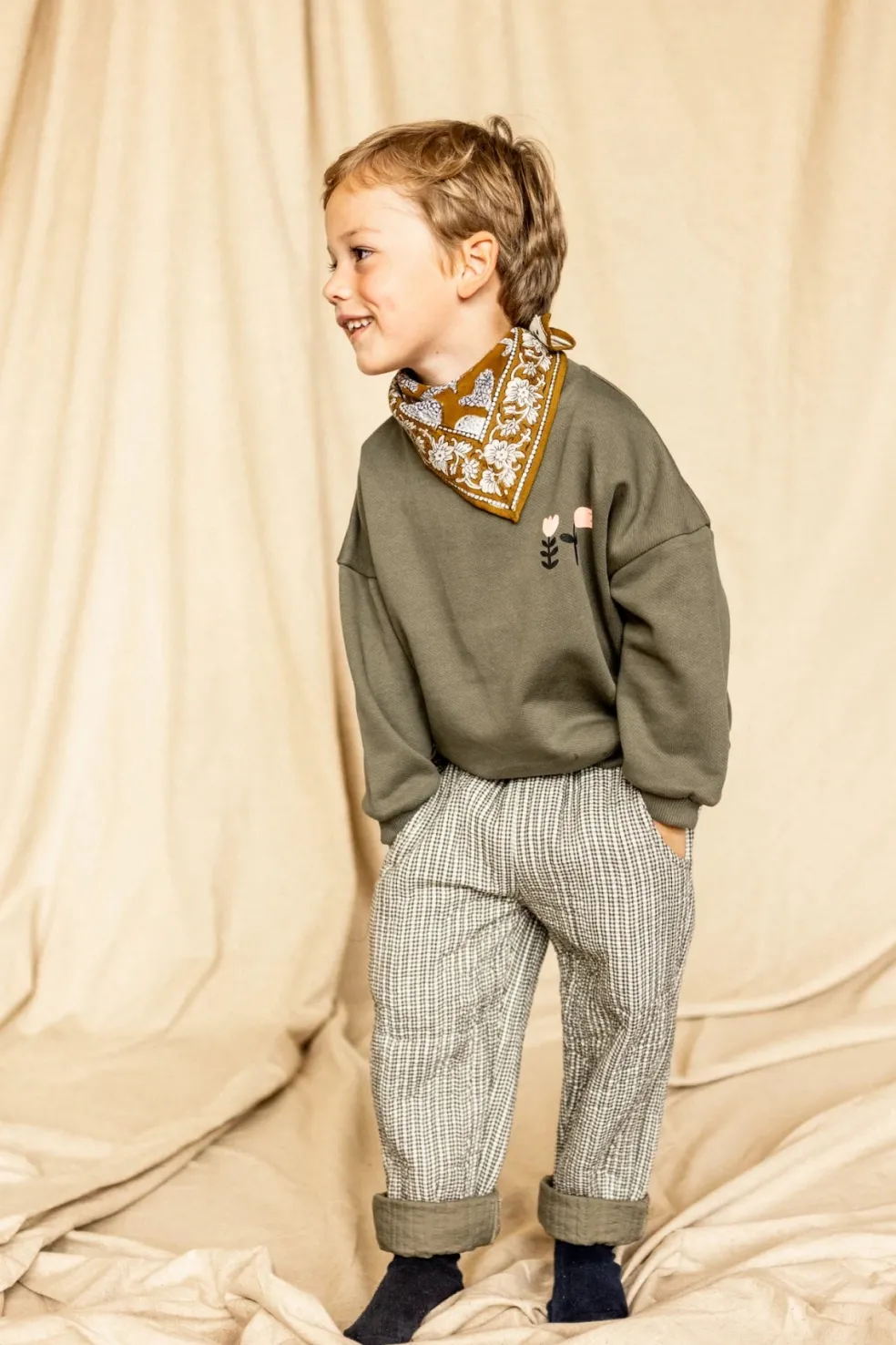 Le pantalon Preeti Khadi Kaki sera parfait pour un look confortable et stylé. Matelassé, avec une forme « boule », il est idéal pour les journées fraîches et les aventures en plein air. Son côté mixte lui permettra de naviguer du dressing fille au dressing garçon !