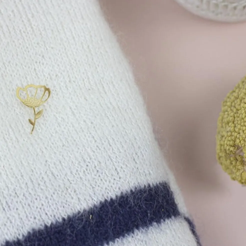 Un joli pin’s en forme de fleur en laiton qui habillera vos plus jolis pulls, gilets ou vestes.