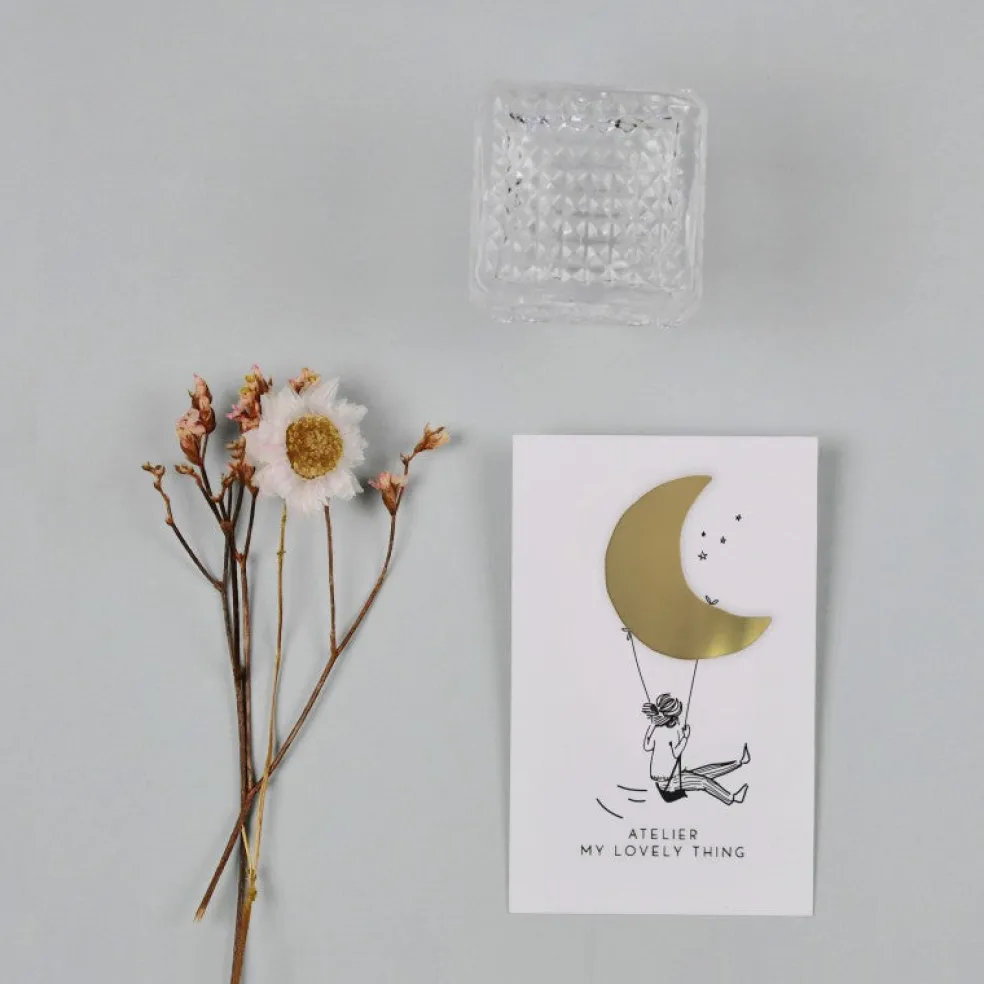 Un beau pin’s lune en laiton qui habillera vos plus jolis pulls, gilets ou vestes.