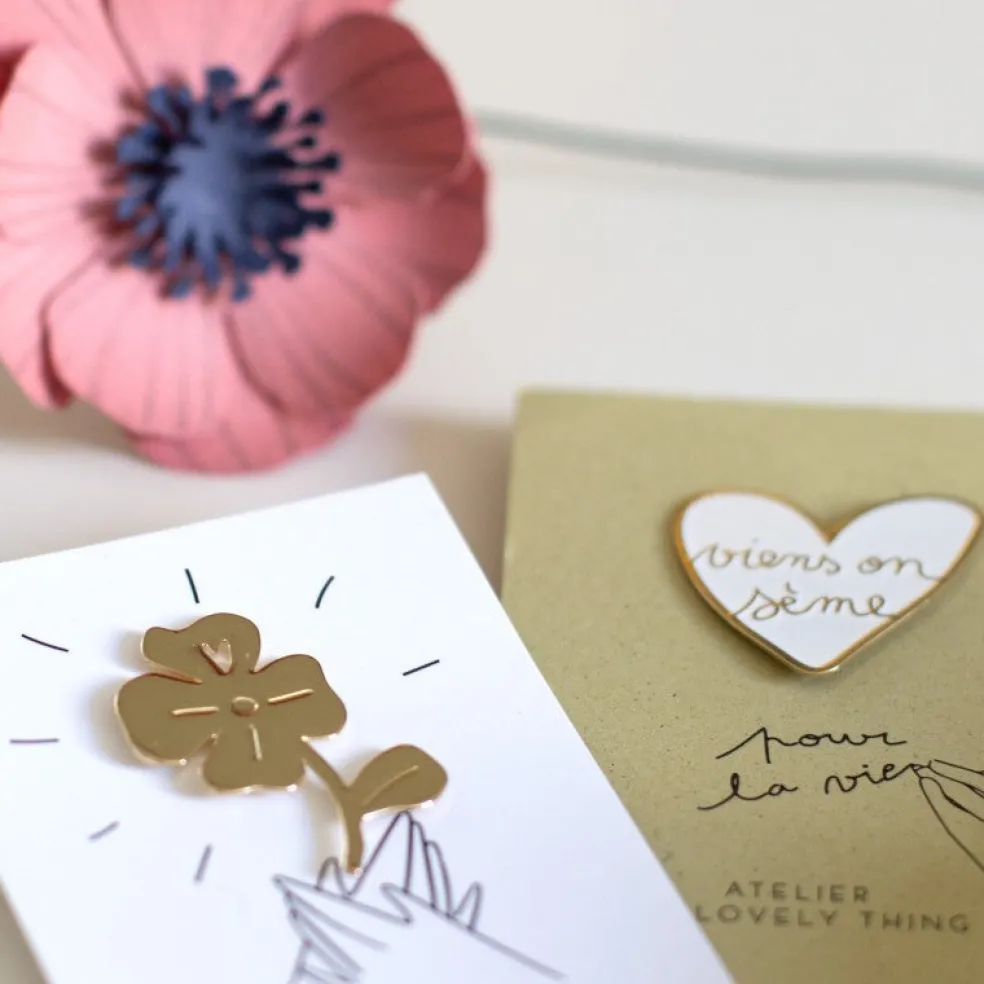Un beau pin’s trèfle en laiton qui habillera vos plus jolis pulls, gilets ou vestes.