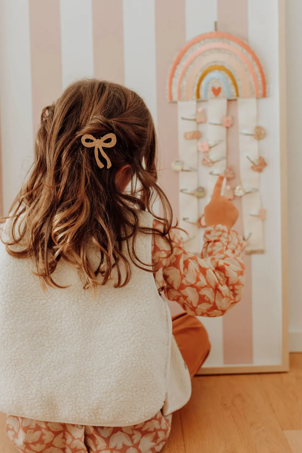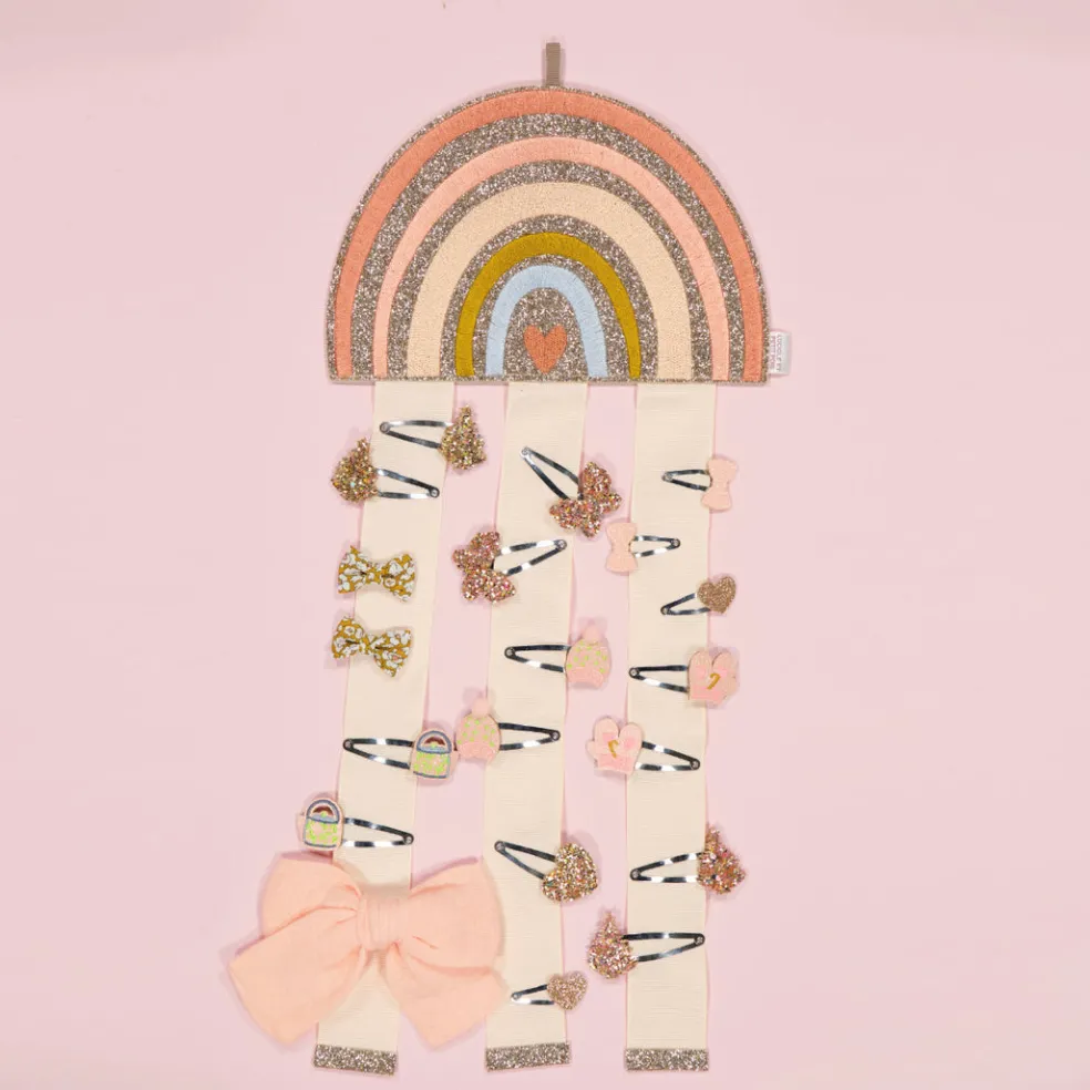 Découvrez ce ravissant porte-barrettes en forme d’arc-en-ciel qui apportera une touche déco tout en étant hyper pratique. Doté de trois rubans, il offre un espace généreux pour ranger un grand nombre de barrettes !