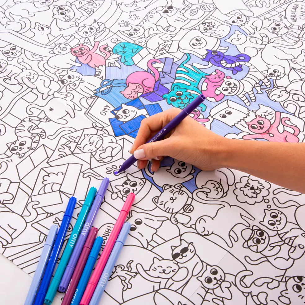 Une multitude de détails à colorier avec toujours l’humour décalé d’Omy ! Un espace artistique sans limites pour jouer et colorier seul ou à plusieurs, à déplier au sol ou sur une table à accrocher au mur.