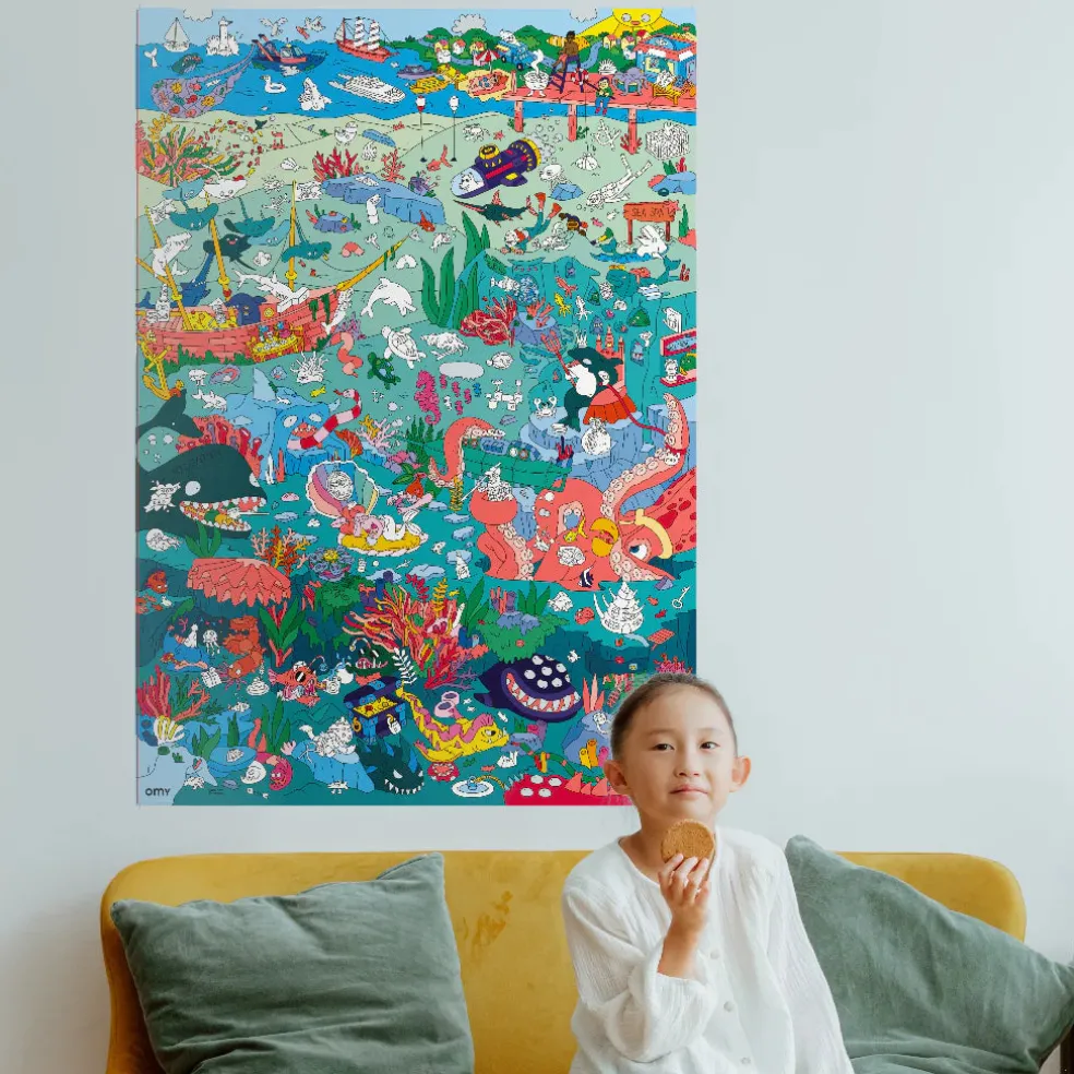 Plongez pour un voyage sous les mers et découvrez le monde marin comme vous ne l’avez jamais vu! Amusez-vous avec un poster « cherche & trouve » géant : avec plus de 100 stickers pour se divertir pendant des heures.