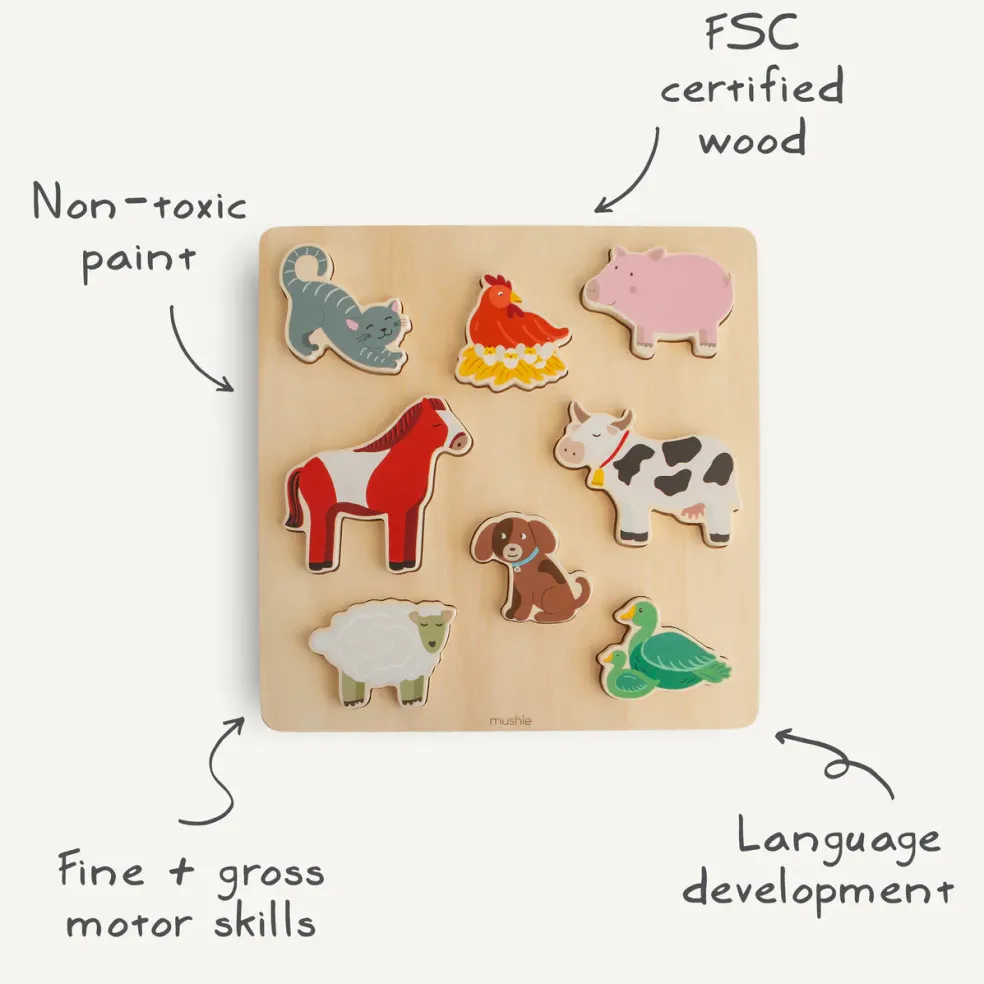 Faites découvrir aux enfants les animaux de la ferme avec ce puzzle en bois. L’ensemble comprend huit pièces sur le thème des animaux de la ferme avec des bords lisses conçus pour les petites mains. Les petits amélioreront leur motricité fine et leur coordination œil-main en saisissant, manipulant et insérant les pièces dans leurs emplacements correspondants.