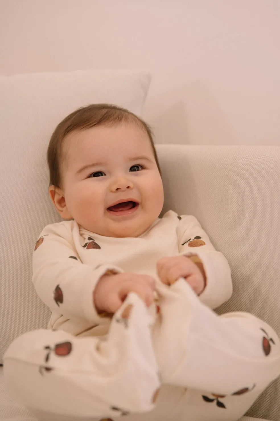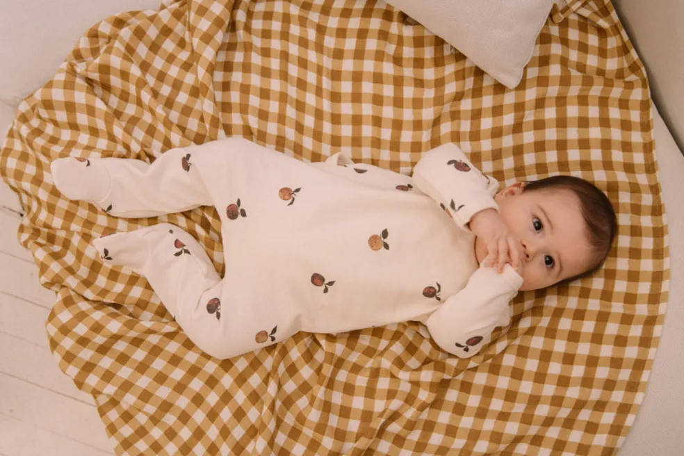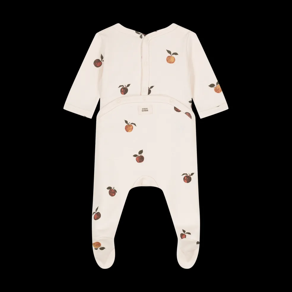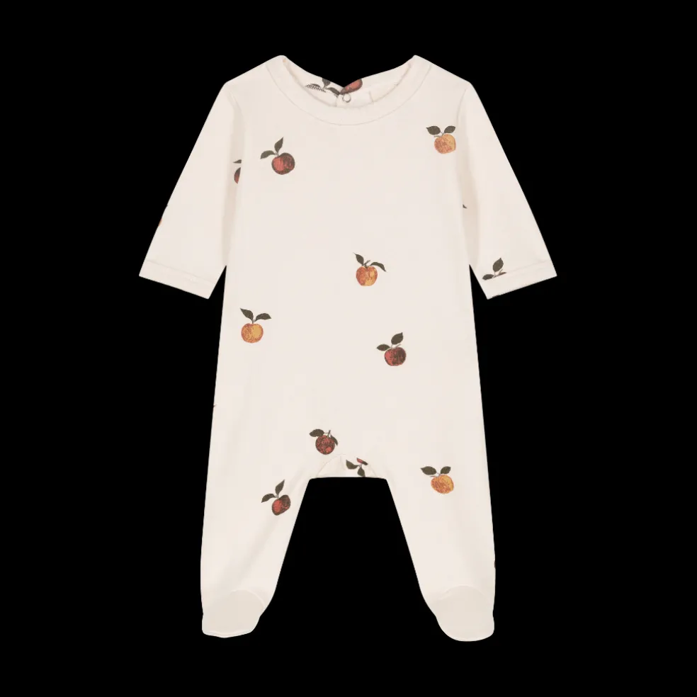 Pyjama une pièce à pieds, en molleton de coton biologique. Les pyjamas super doux , parfaits pour vos petits bouts pour cet automne hiver. Ici on retrouve l’imprimé de cette saison, les pommes !