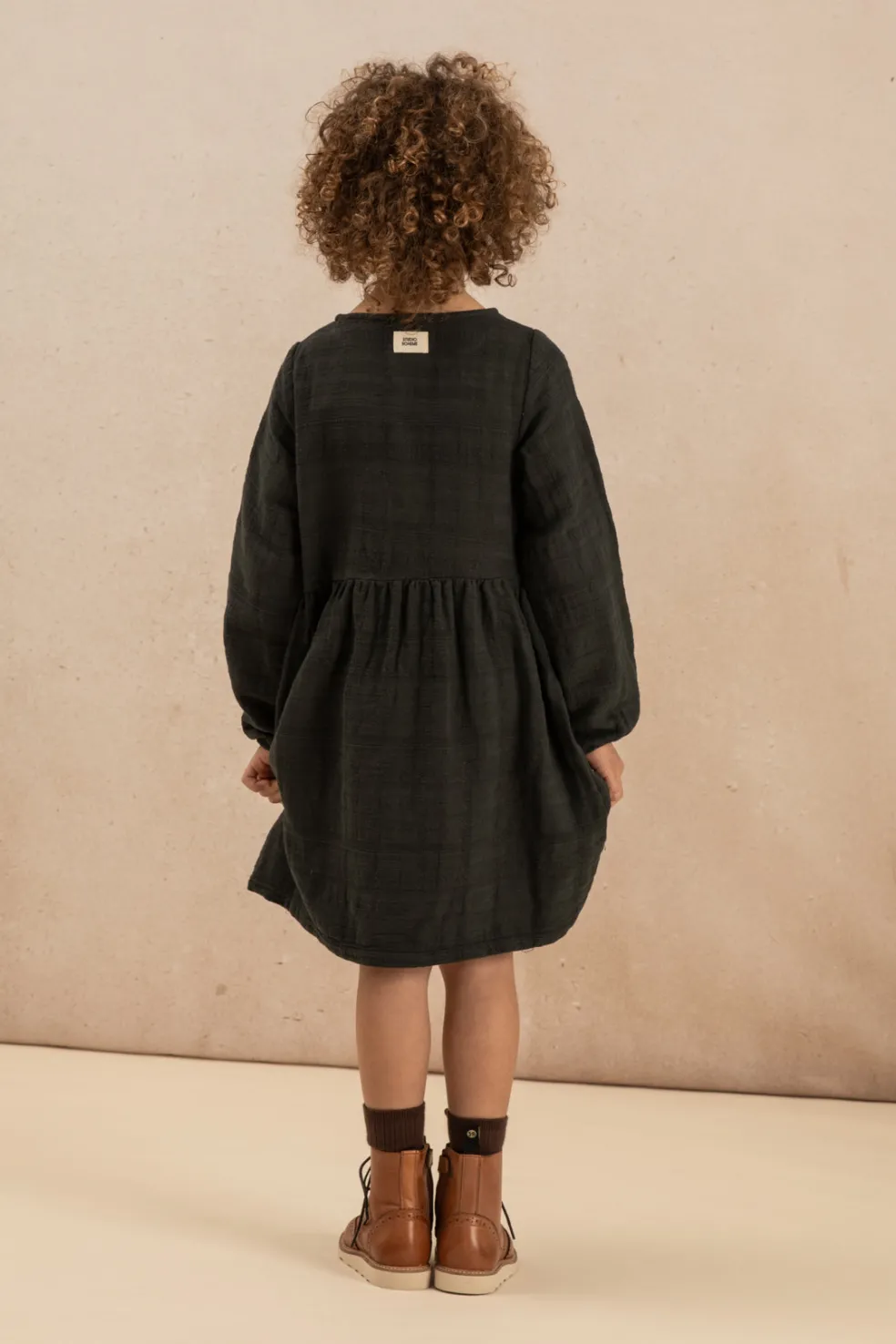 Robe manches longues confortable en gaze de coton texturé biologique au style artisanal.
