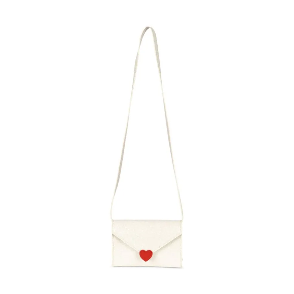 Sac à paillettes avec fermeture à bouton-pression sur le devant et bandoulière fine.