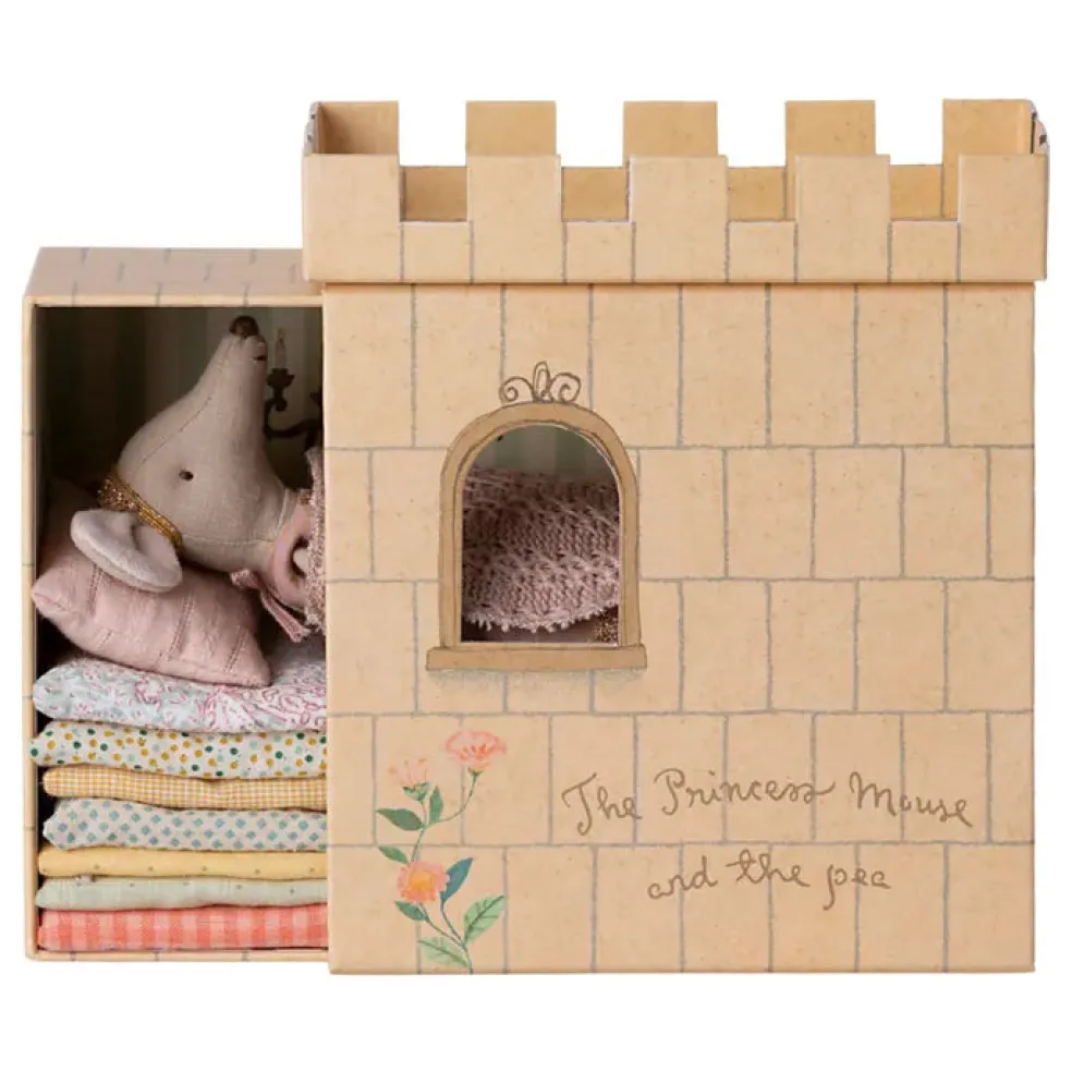 Un classique de Maileg. « La princesse et le petit pois » est la source d’inspiration de ce jeu. Comprend un château avec des matelas, un petit pois et une souris princesse. Combinez cet ensemble avec d’autre souris et accessoires.